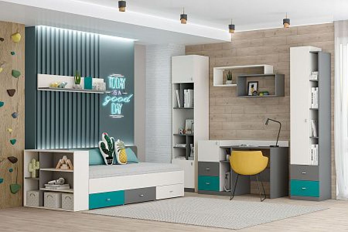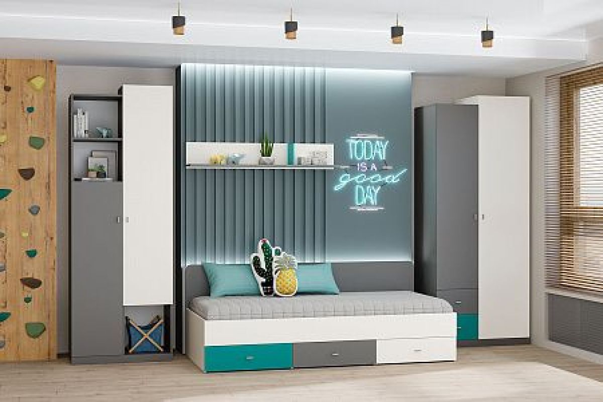Модульная детская Клео (ЛДСП графит-миндаль-океан)