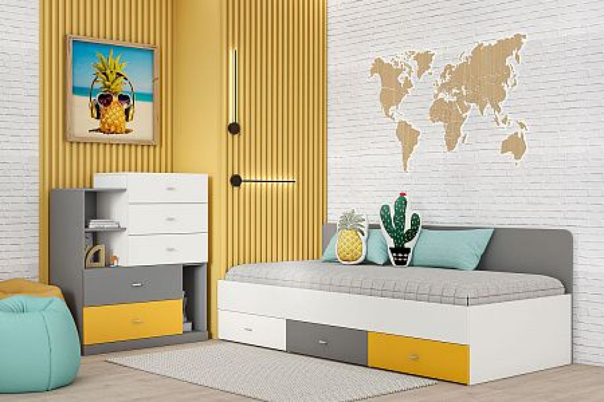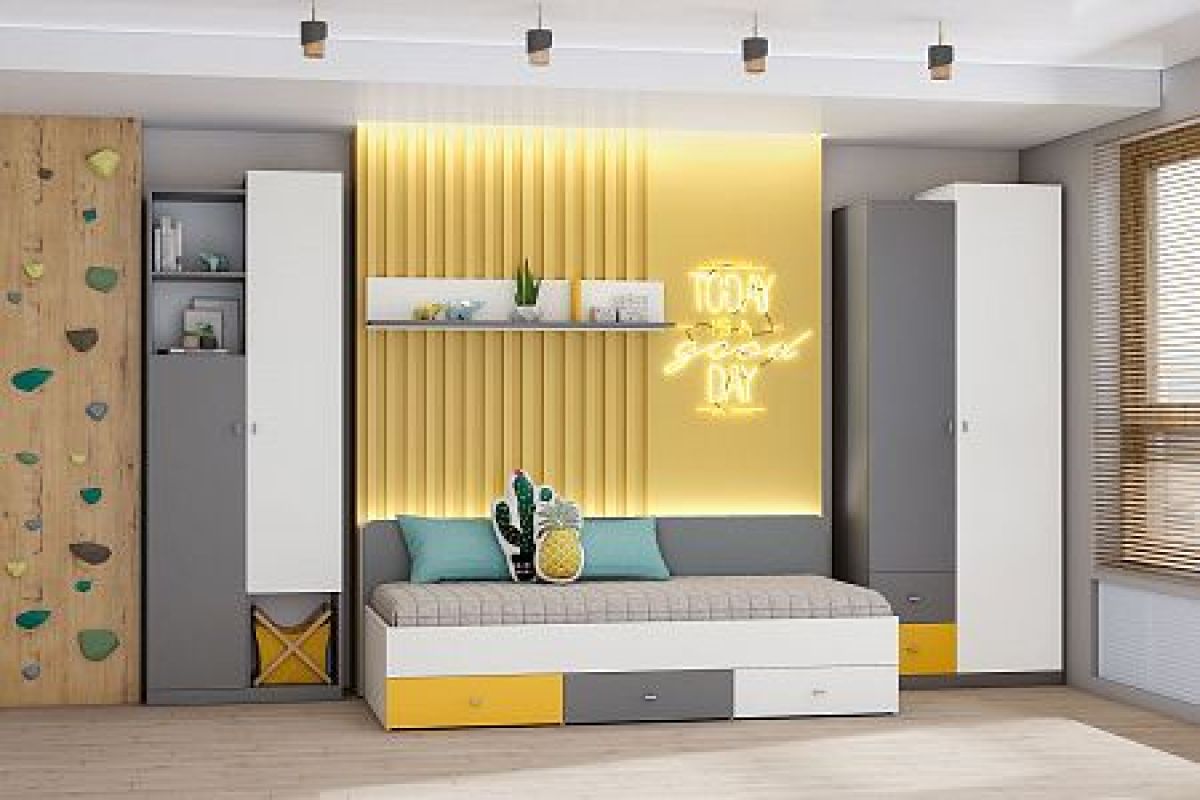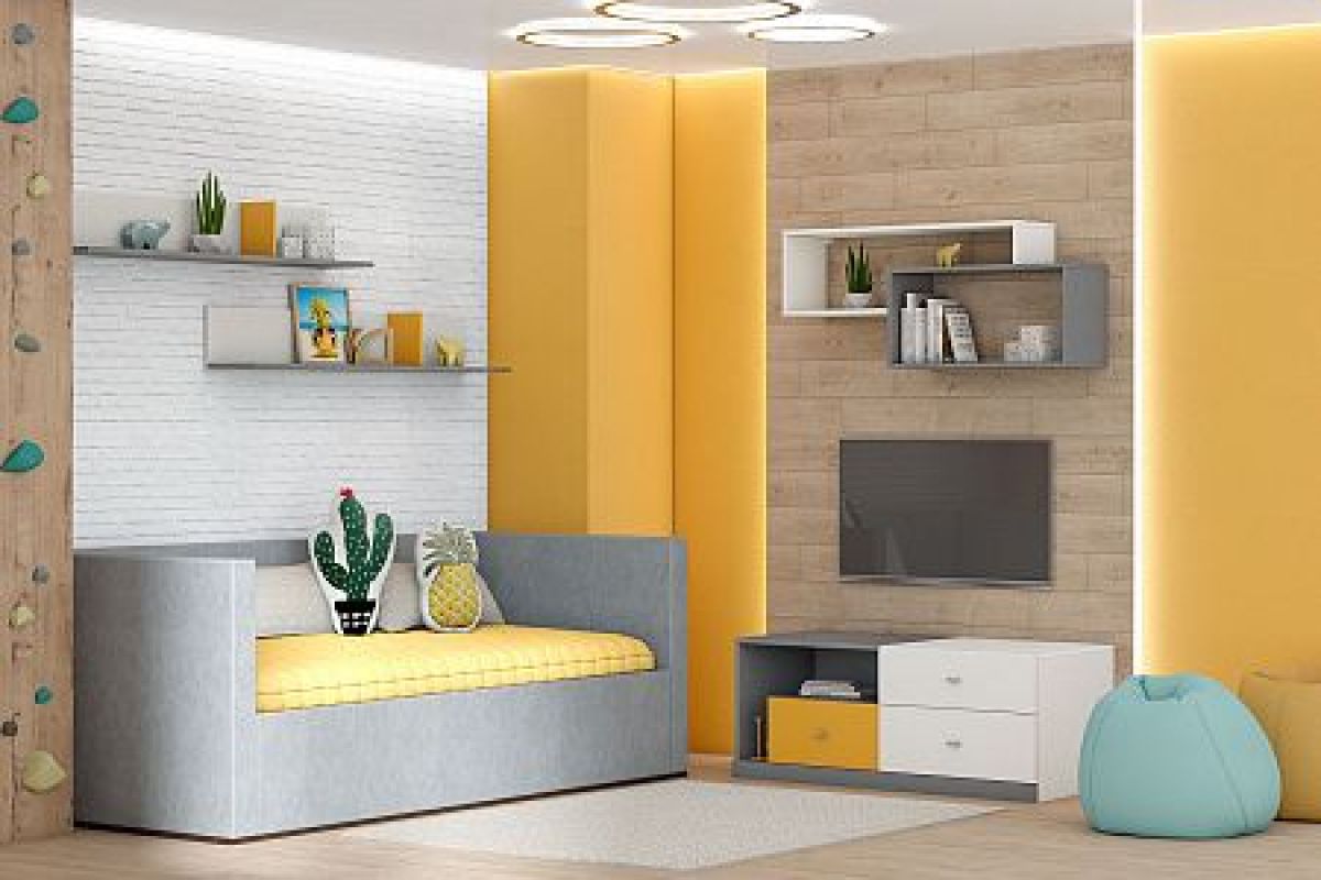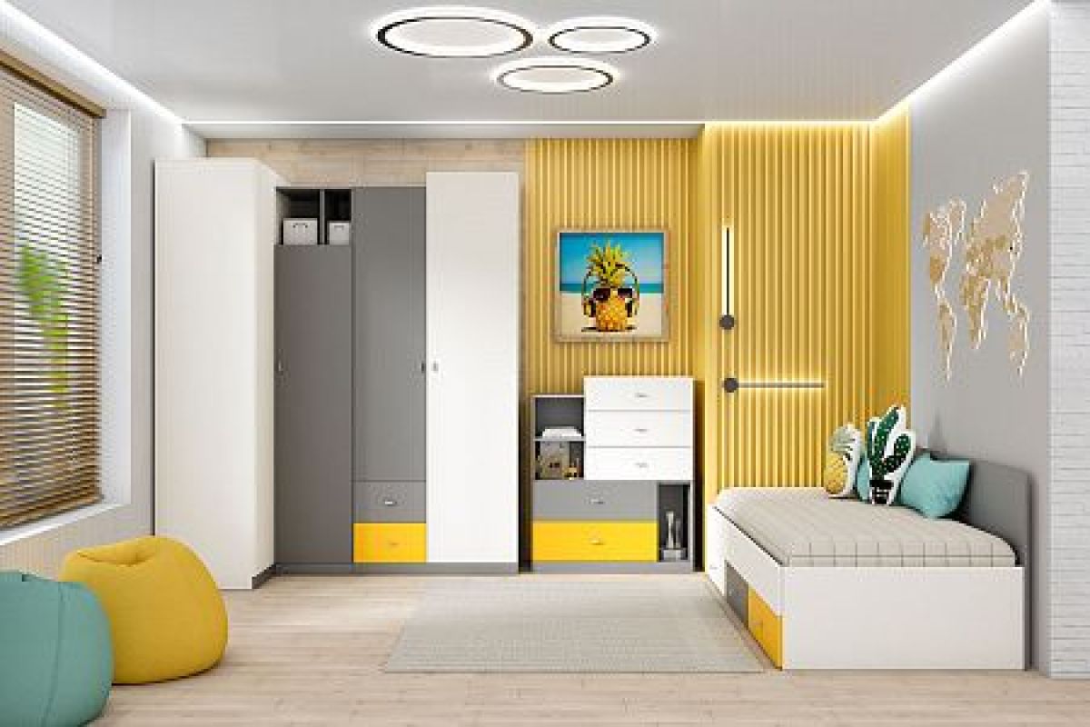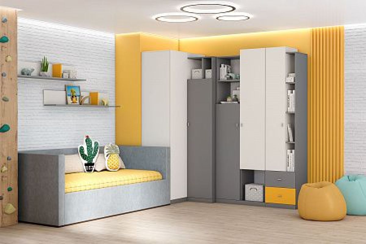 Модульная детская Клео (ЛДСП графит-миндаль-солнечный)