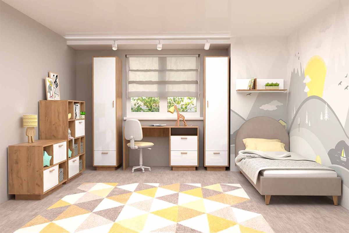 Модульная Детская Эго (дуб крафт золотой/белый глянец) цоколь