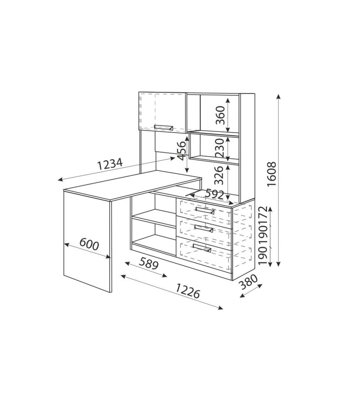 *Стол М16 можно дополнить выкатной тумбой М09 или ящиками под столешницу М17
