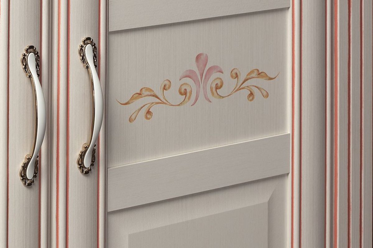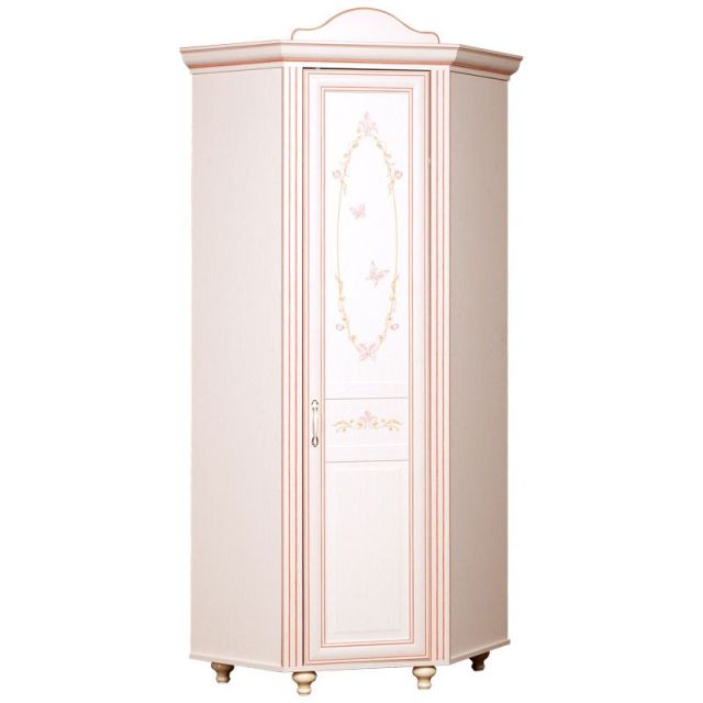 Мебель для детской комнаты «Алиса» – мебель для девочек и девушек, стилизована под Прованс, который поддержан светлым декором, цветочными рисунками и патиной на фасадах. При создании детской использовались приемы итальянского декорирования мебели. Мотивы классической росписи в сочетании с любимым мотивом детского рисунка – бабочки и цветы – создают ощущение юности и нежности. Использование декоративных элементов – корон и карнизов в наборе мебели не перегружают интерьер детской комнаты и при этом создают ощущение интерьера маленькой принцессы. Изящные ручки под золото со вставками молочно-белого цвета идеально сочетаются с кремово-белым декором и золотистой палитрой рисунков вензелей. При всей внешней легкости и утонченности мебель весьма практична в использовании, благодаря надежной фурнитуре «Hettich». Еще одним плюсом детской «Алиса» является большое количество различных модулей, позволяющих собрать комплект для любой комнаты.