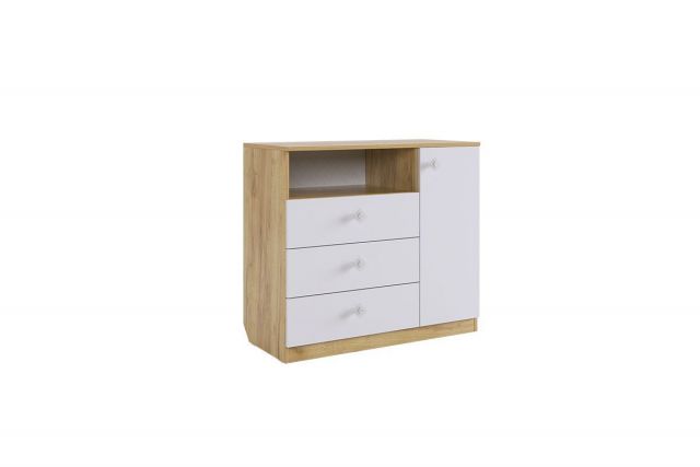 Состоит из: 3-х выдвижных ящиков, ниши и полок с закрытой дверью.