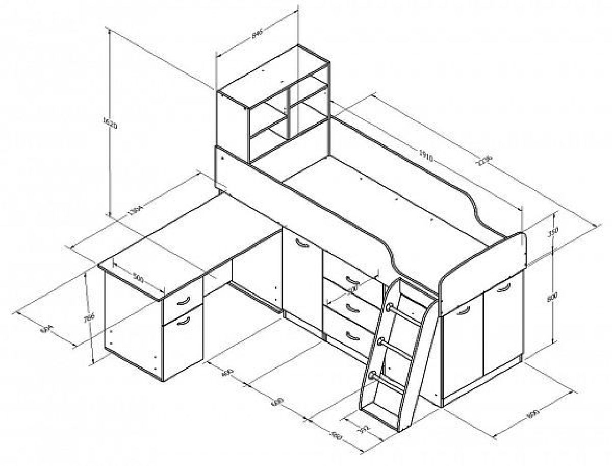 • Кровать-чердак "Дюймовочка-1" подойдет для детской или подростковой комнаты. Это многофункциональный комплекс, который объединяет удобное спальное место размером 190*80 см, множество мест для хранения вещей: открытые и закрытые полки, ящики. А также полноценный рабочий стол, который можно поставить отдельно от кровати. Прочная конструкция рассчитана на детей от 1 года до 16 лет.