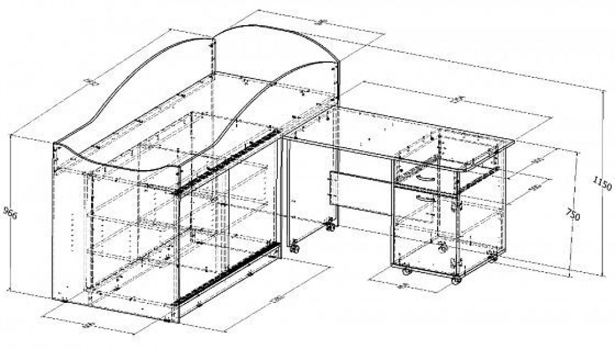 • рабочего стола, имеющего отделение с полками и ящиком.