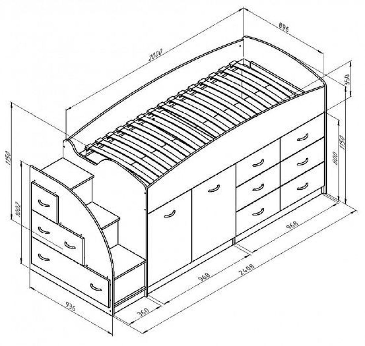 Корпус выполнен из ЛДСП Egger, кромка - ПВХ 2 мм и 0,4 мм. Фурнитура производства России, Турции, Германии. Сборка комплекса возможна в любую сторону. Максимальная нагрузка на спальное место 90 кг. Гарантия производителя: 18 мес.