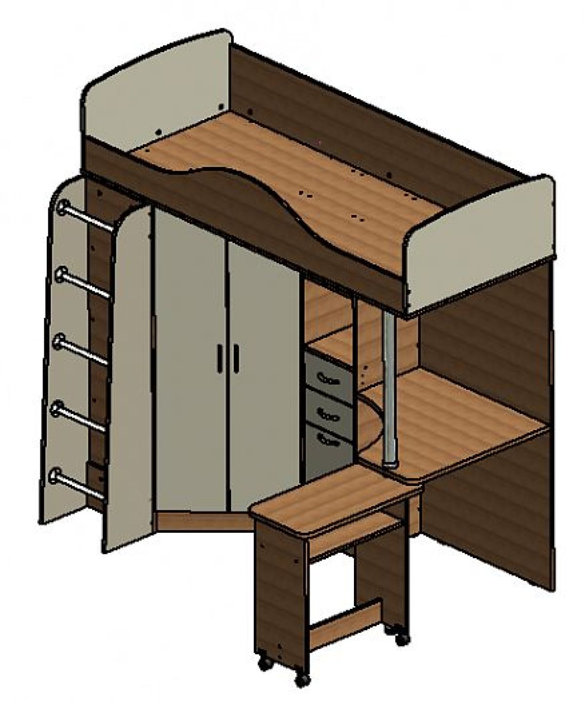 Кровать-чердак "Теремок-1" - это целый комплекс мебели, включающий в себя спальное место размером 190*80 см, шкаф для одежды, пенал с ящиками и полноценный рабочий стол. Прочная конструкция рассчитана на детей от 3 до 16 лет. Такой уголок экономит пространство в детской комнате, при этом обеспечивая все необходимые функции.