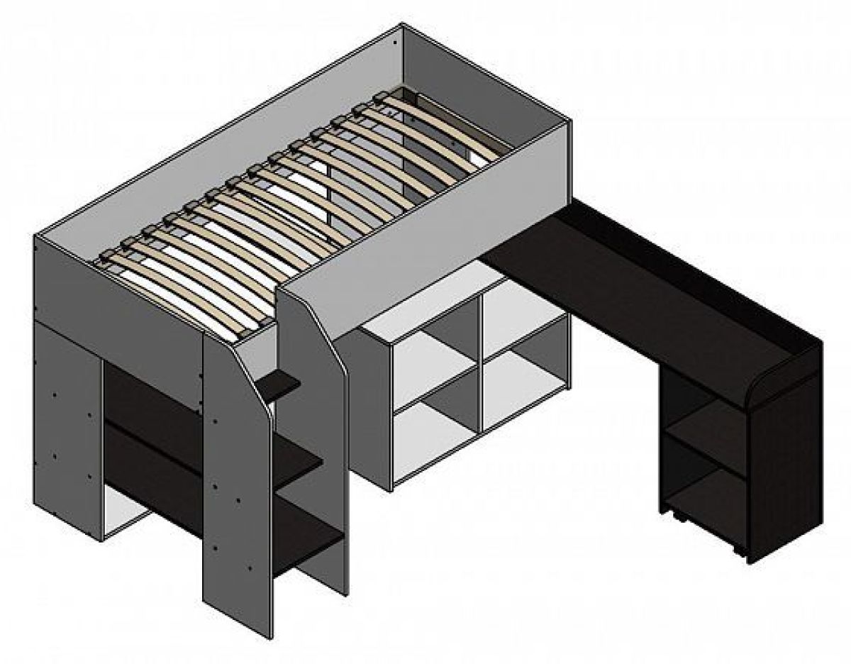Компактный детский уголок "Теремок-2" объединяет в себе спальное и рабочее место детской комнаты. Под спальным местом располагается стеллаж и пиьсменный стол. Экономия пространства достигается за счет складывающейся конструкции стола. Кровать рассчитана на детей в возрасте от 3 до 18 лет.
