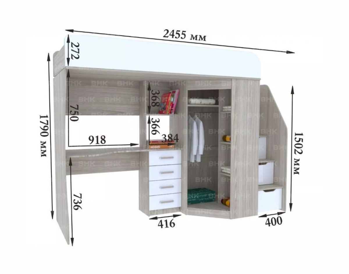 Габаритные размеры комплекта (ШхВхГ): 2455х1790х832