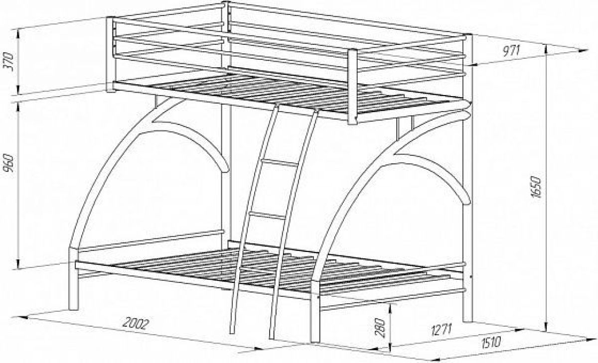 Металлическая двухъярусная кровать "Виньола-2" может использоваться в спальне подростков и взрослых, так как способна выдерживать нагрузку до 300 кг. В отличие от кроватей из ЛДСП кровать из металла выглядит менее громоздкой.