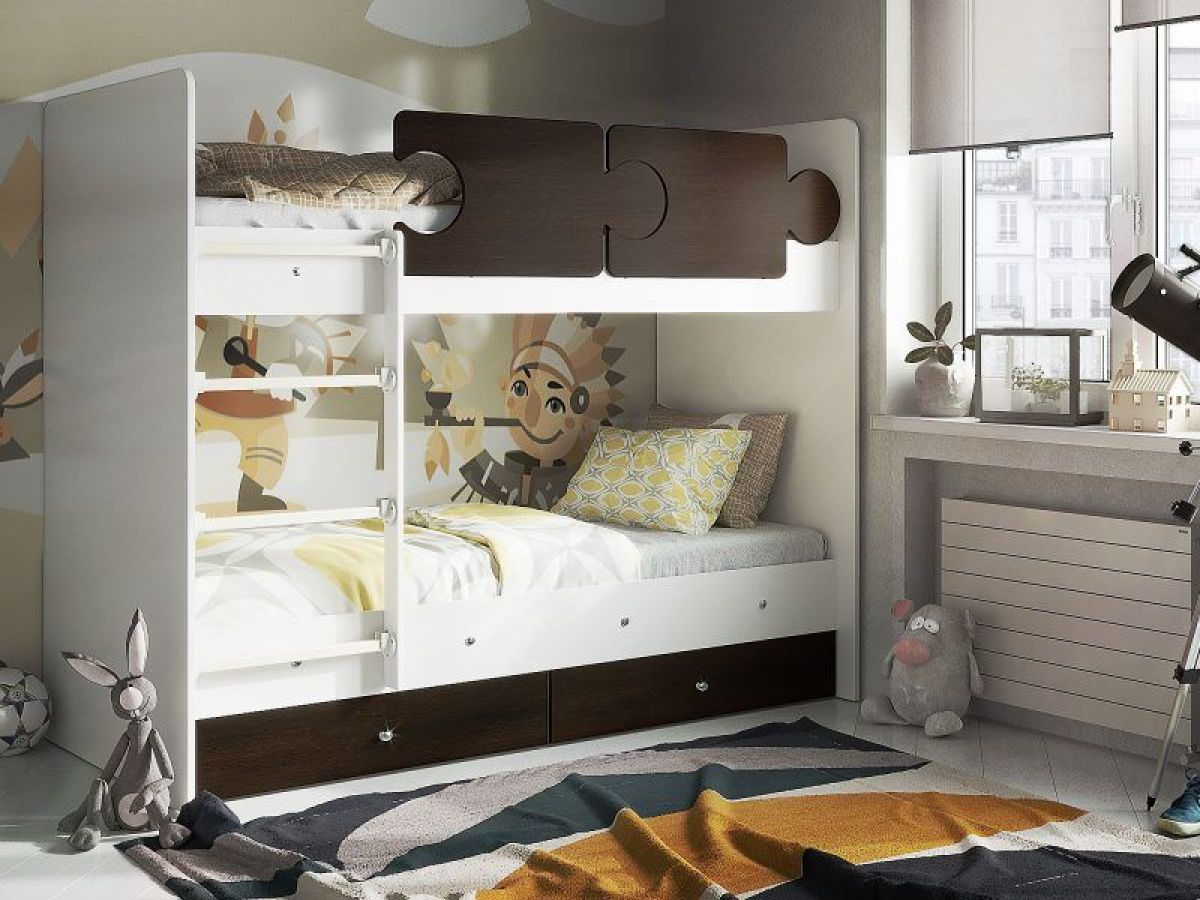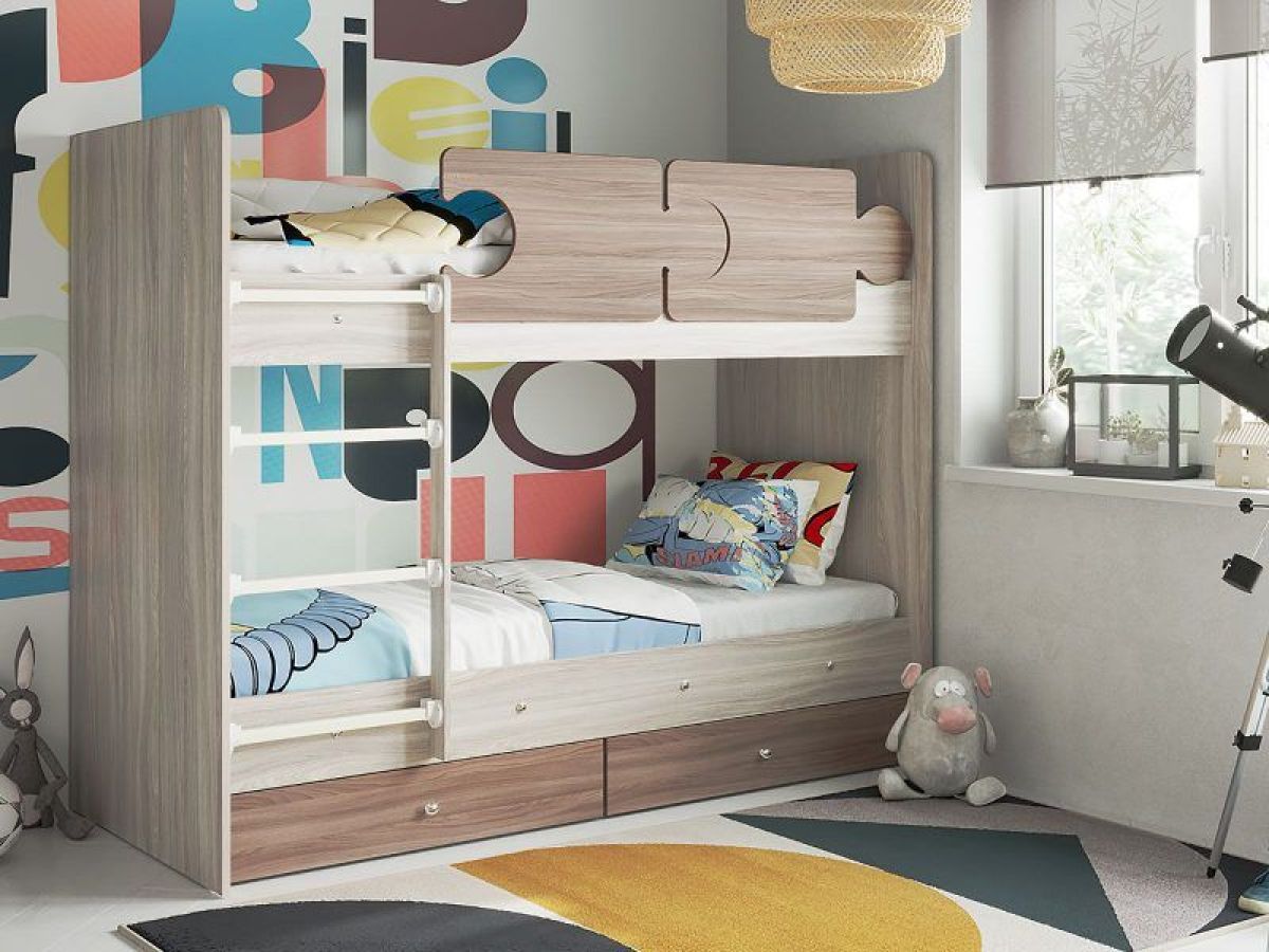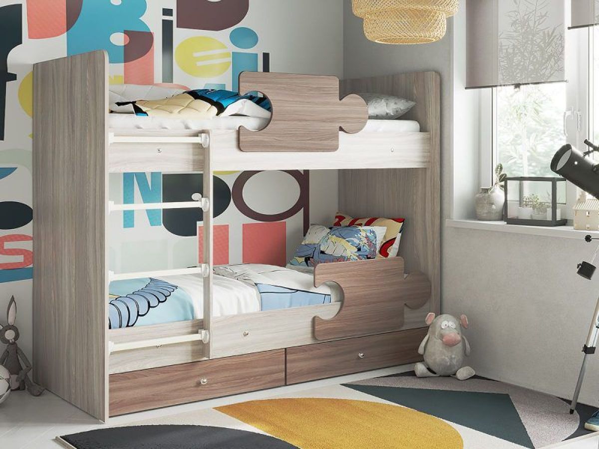Кровать двухъярусная "Тетрис" (щиты) с бортиками + ящики