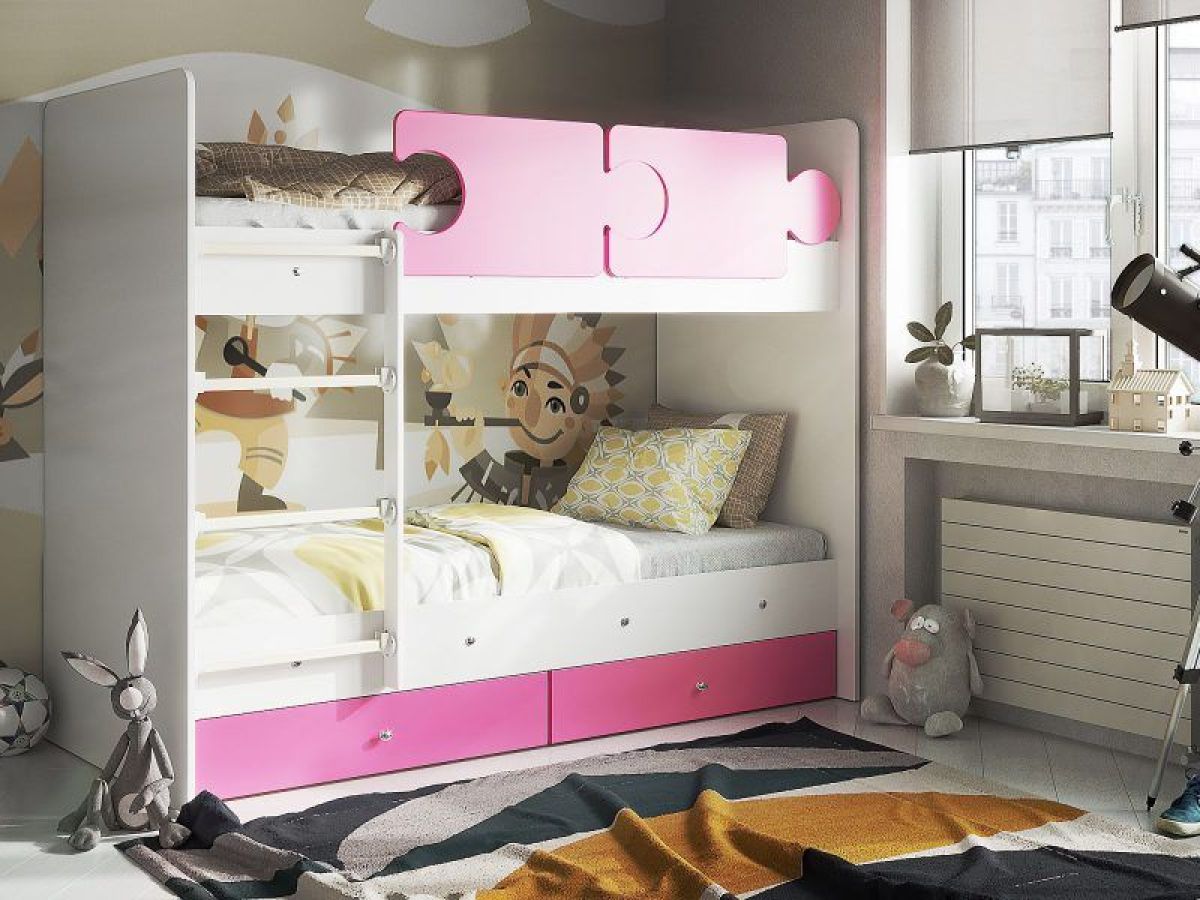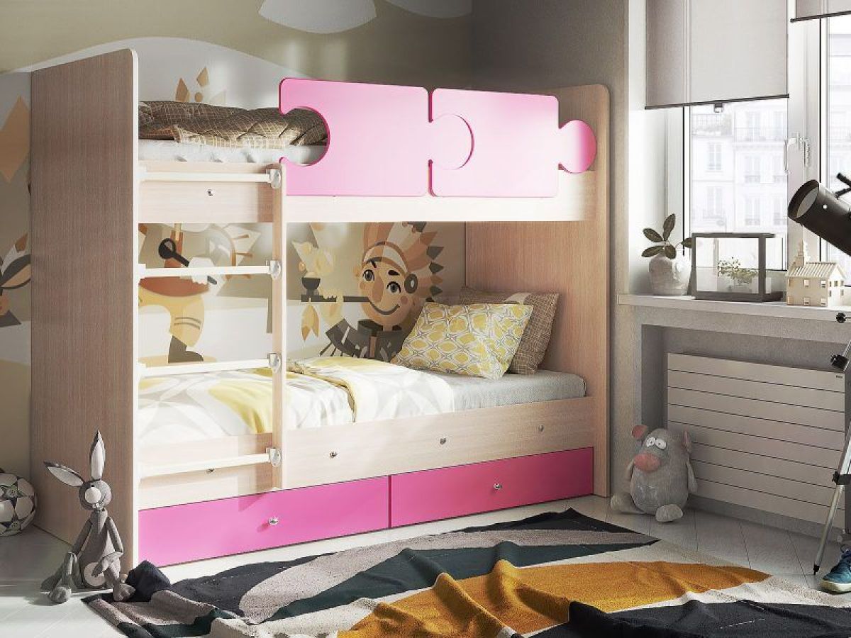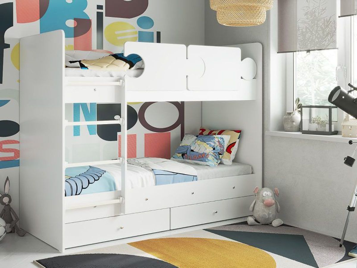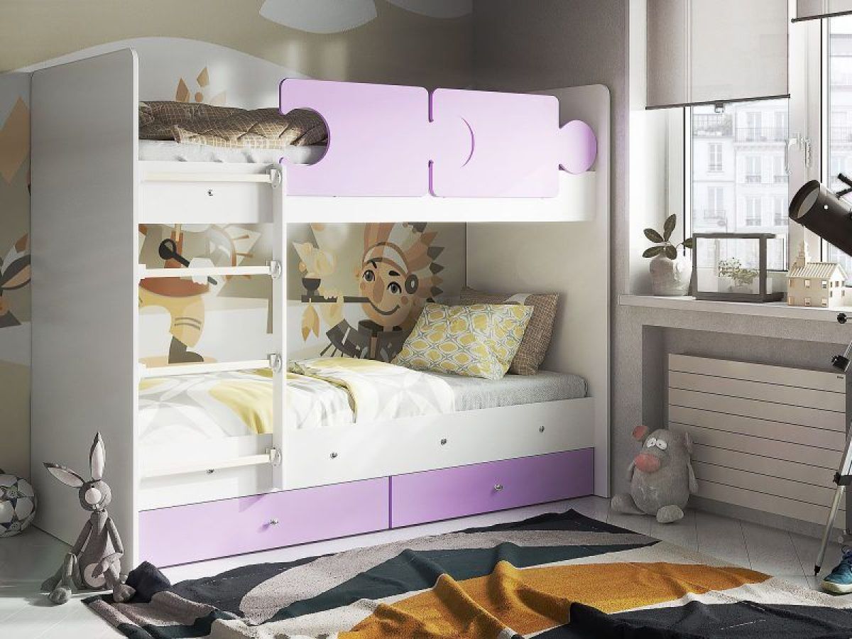 Кровать двухъярусная "Тетрис" (щиты) с бортиками + ящики