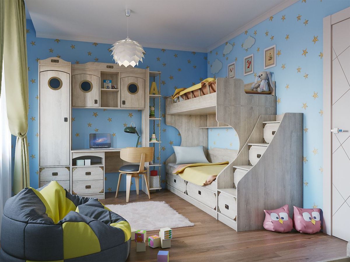 Кровать 2-х ярусная с лестницей НКМ Мираж-1