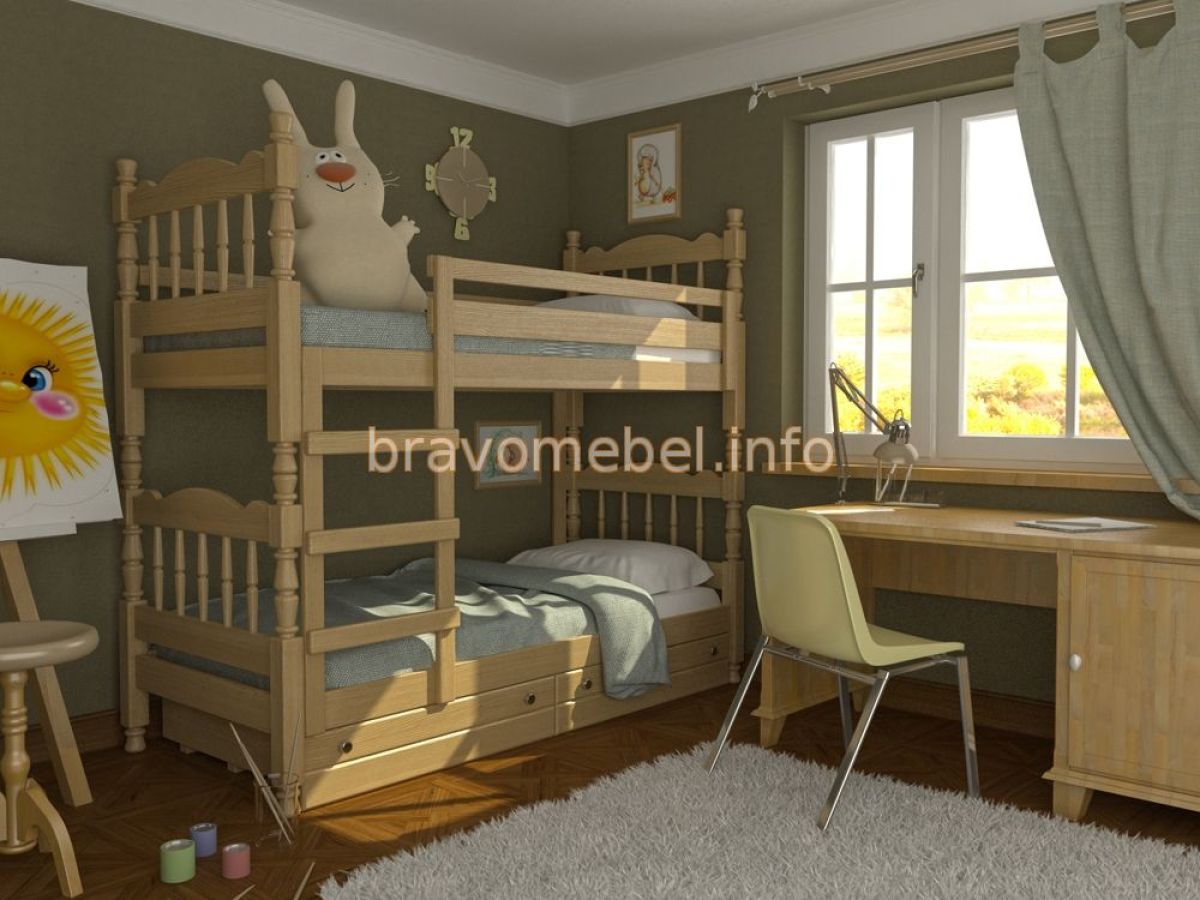 СОНЯ Кровать двухъярусная (Сосна) с 2 ящиками