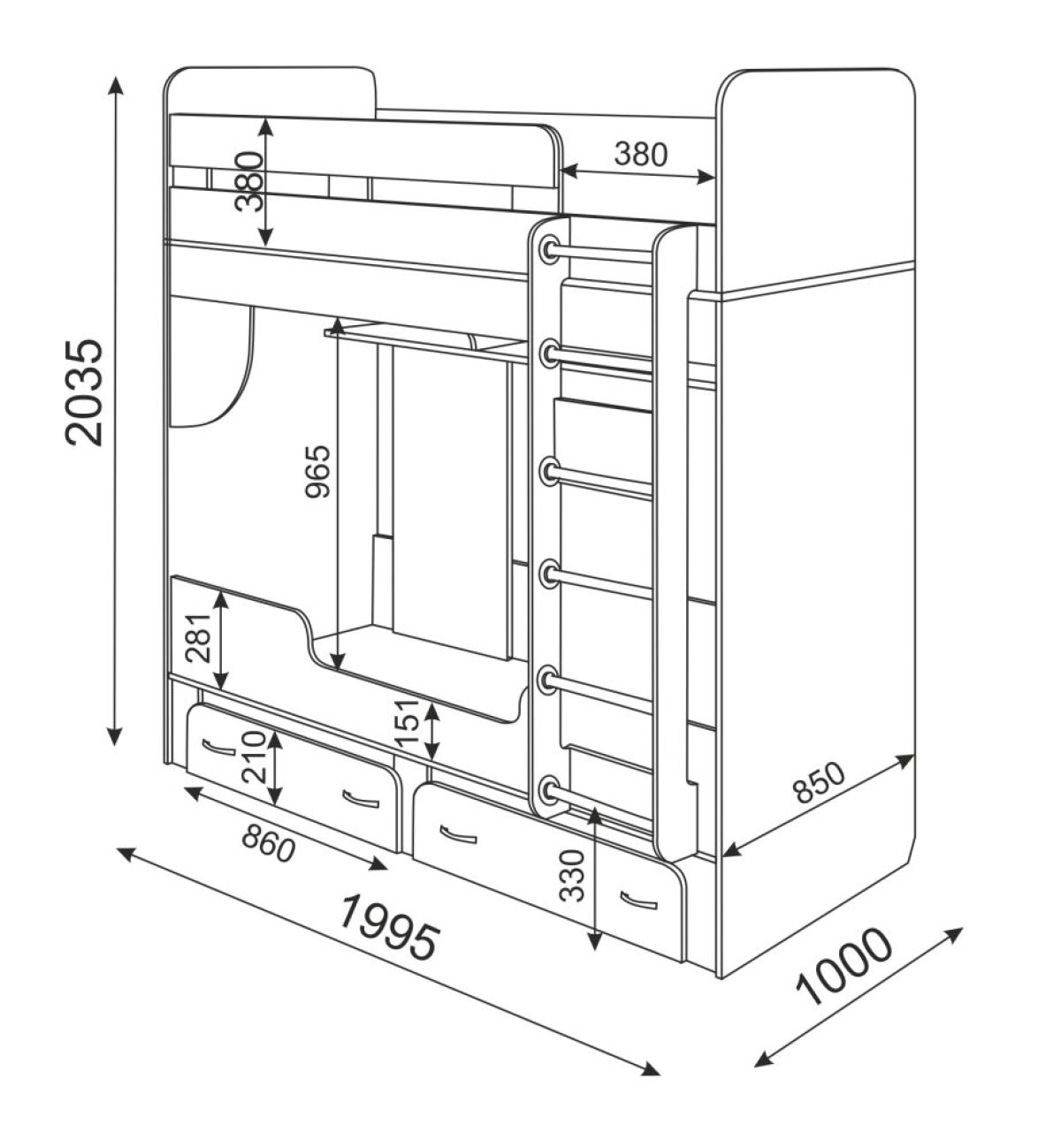 3. Верхнее спальное место с бортом высотой 360 мм.