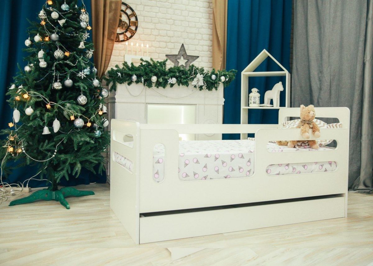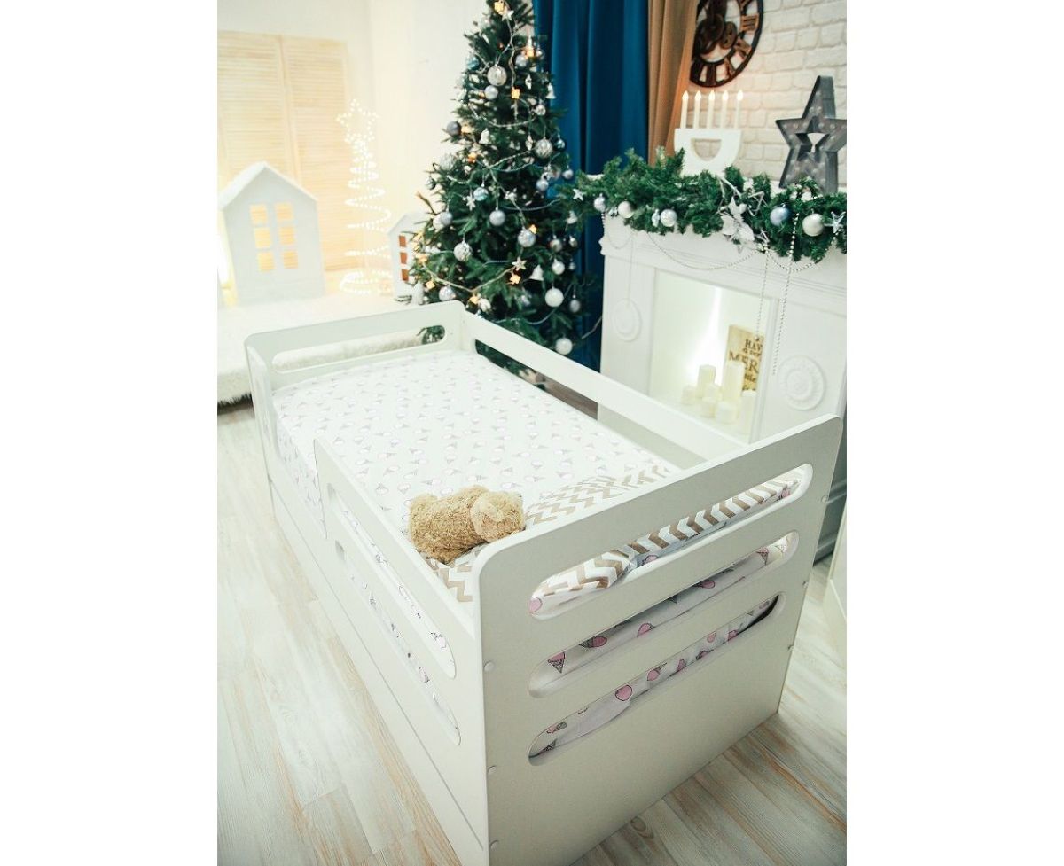 Кровать для детишек с бортиком, выкатным ящиком для белья или игрушек.
