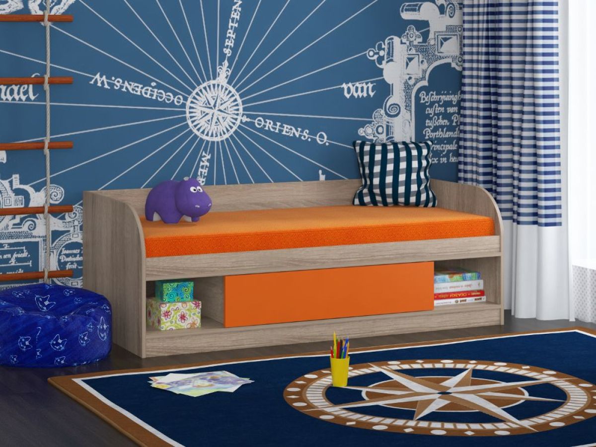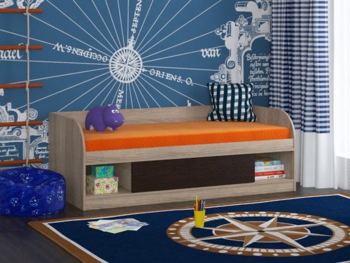 Кровать представляет собой удобное спальное место, подходящее для ребенка от 1,5 до 10 лет. Для маленьких детей можно дополнительно поставить ***бортик - серия Дельта Ограждение №1. Данная модель имеет вместительный выдвижной ящик и ниши, которые прекрасно подойдут для хранения игрушек и постельного белья. Лаконичный дизайн сделает кровать неотъемлемой частью уютного интерьера спального помещения.