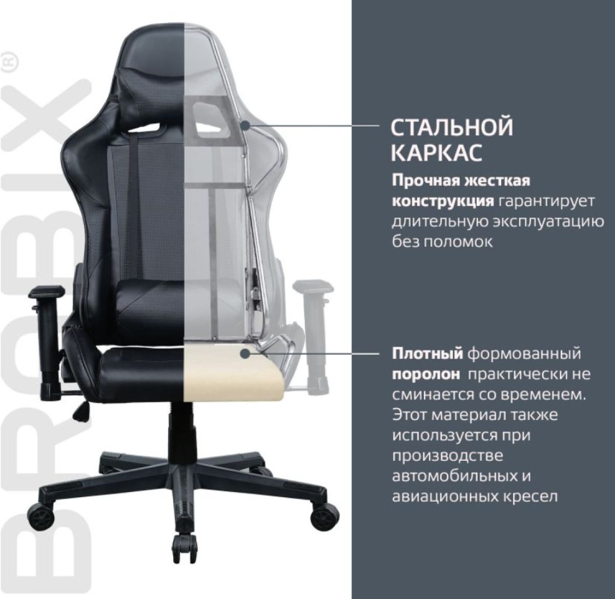 Кресло компьютерное BRABIX "GT Carbon GM-115", две подушки, экокожа, черное, 531932