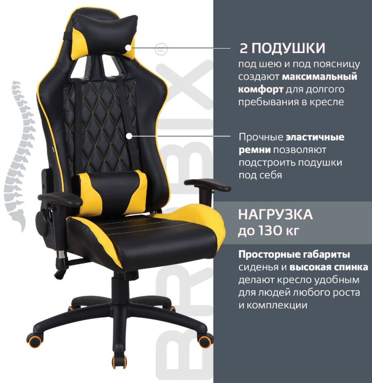 Кресло компьютерное BRABIX "GT Master GM-110", две подушки, экокожа, черное/желтое, 531927