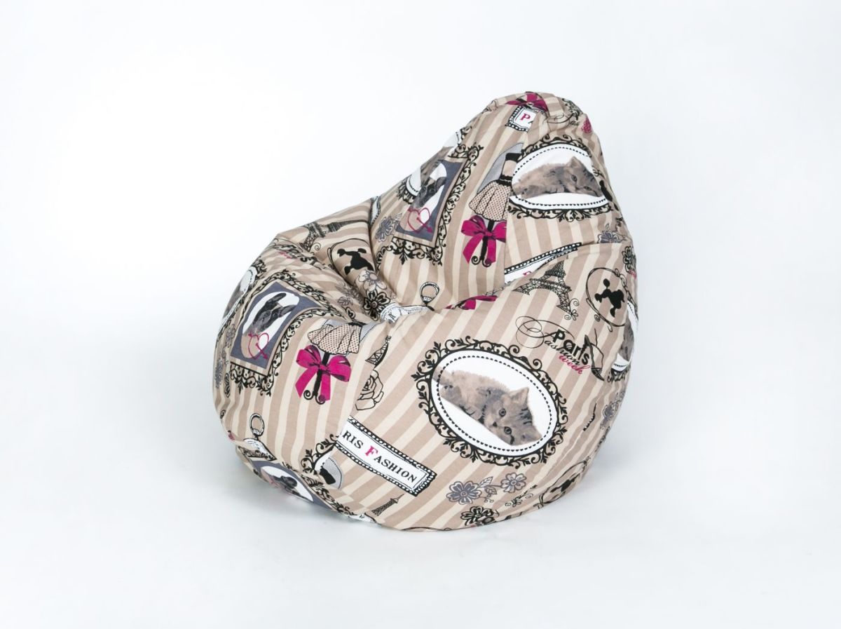 Наполненитель пенополистирол, два чехла на молнии: внешний из декоративной ткани и внутренний из спонбонда. Внутренний чехол оснащен клапаном для проведения досыпки. Для быстрого выхода лишнего воздуха оснащены люверсами. Поставляется в упаковке из полиэтилена.