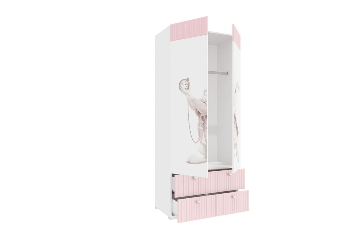 Детская Алиса ПМ-332.22 исп.3 Шкаф комбинированный (с 4 ящ. и 2 дв.) белый матовый с ФП-розовый