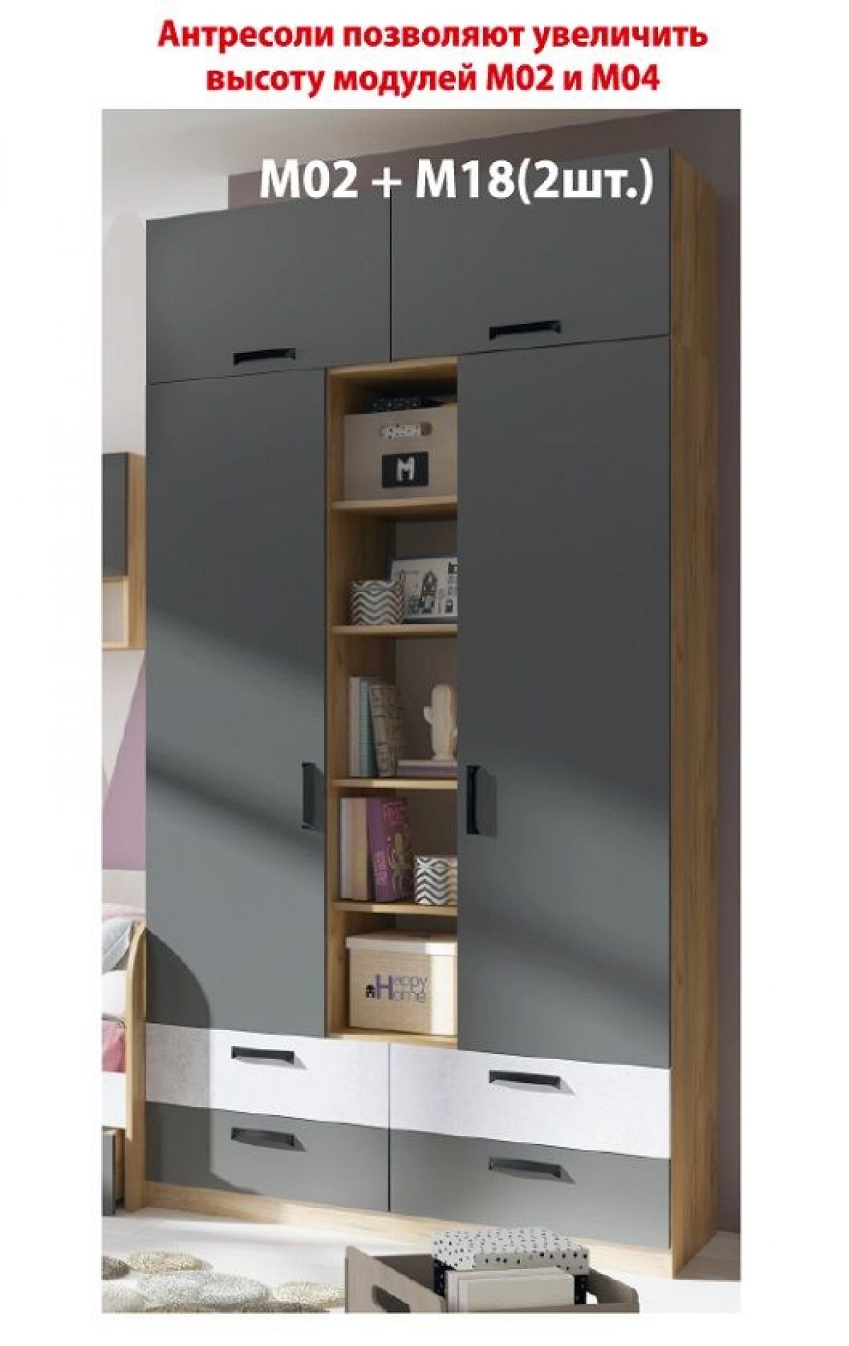 *Доп. опция: Антресоль М18 позволяют увеличить высоту модулей М02 и М04