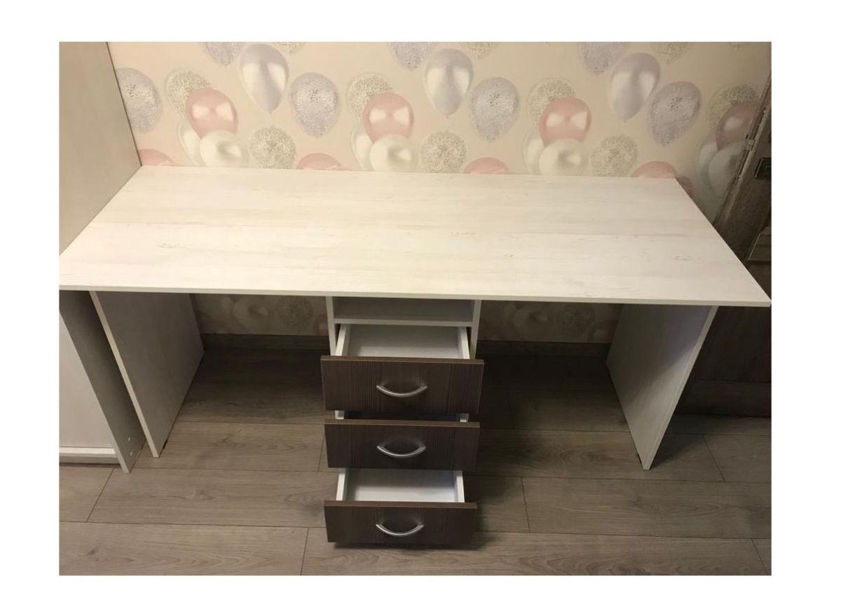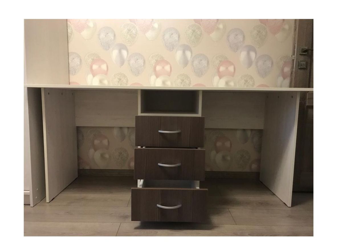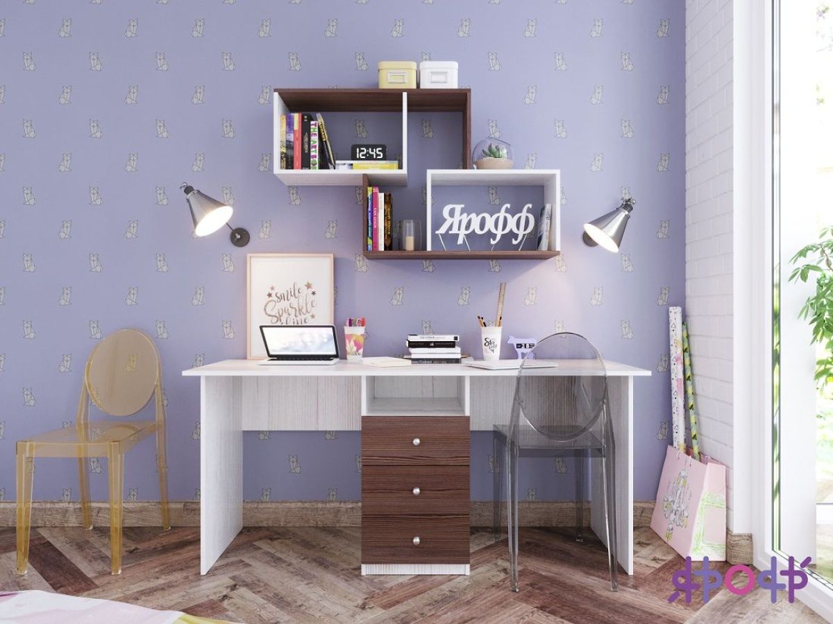 Двухместный стол имеет оптимальную форму и размер, чтобы разместить его вдоль стены в любом месте комнаты, у него большая рабочая поверхность, на которой легко встанет ноутбук или небольшой компьютер. Вы можете выбрать подходящие именно вам цветовое оформление каркаса и фасада двухместного стола для детской комнаты, в частности, чтобы он подходил под остальной комплект модульной мебели или ваш интерьер.