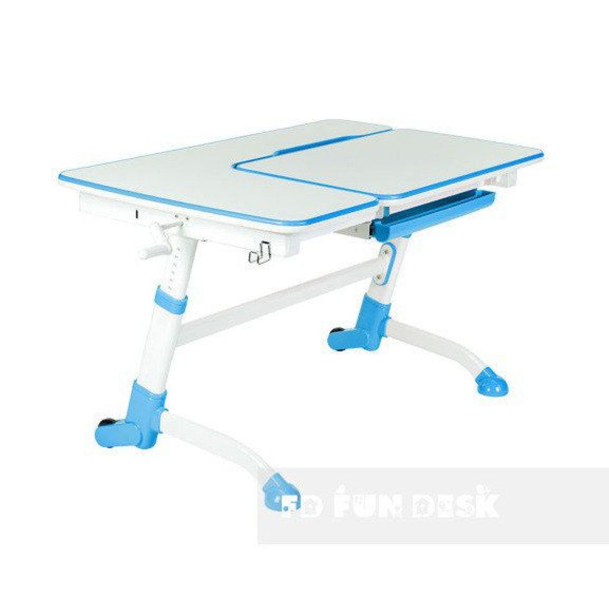 • Стол-трансформер Amare – эргономичный, с увеличенной рабочей поверхностью и дополнительной полкой, регулируемый по высоте с современным дизайном стол для вашего ребенка. Поверхность учебного стола можно наклонять до 25 ° для удобного письма, чтения и рисования. Наличие кривошипной рукоятки позволяет легко регулировать угол наклона столешницы. Специально разработанный дизайн колесиков обеспечивает максимальную мобильность парты. Антибликовое покрытие столешницы защищает глаза вашего ребенка от усталости.