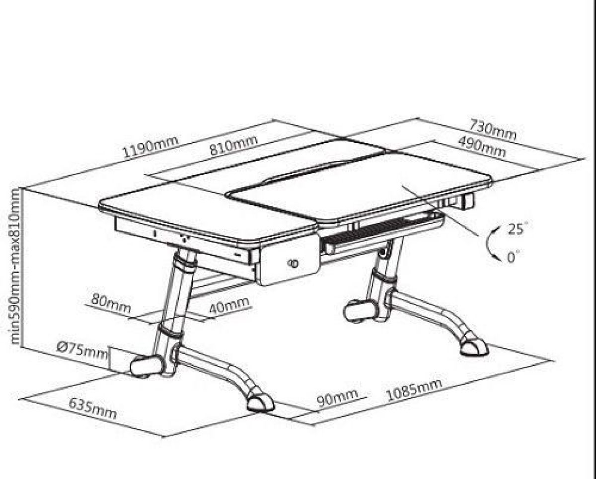 • Размер стола (Ш*Г*В): 1190*730*590-810 мм