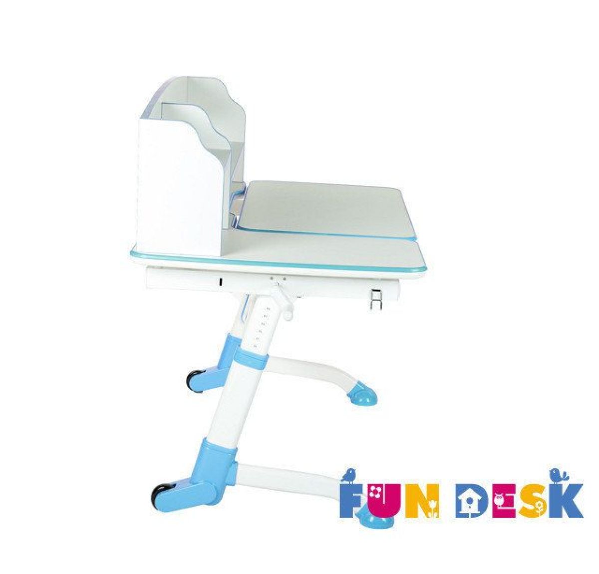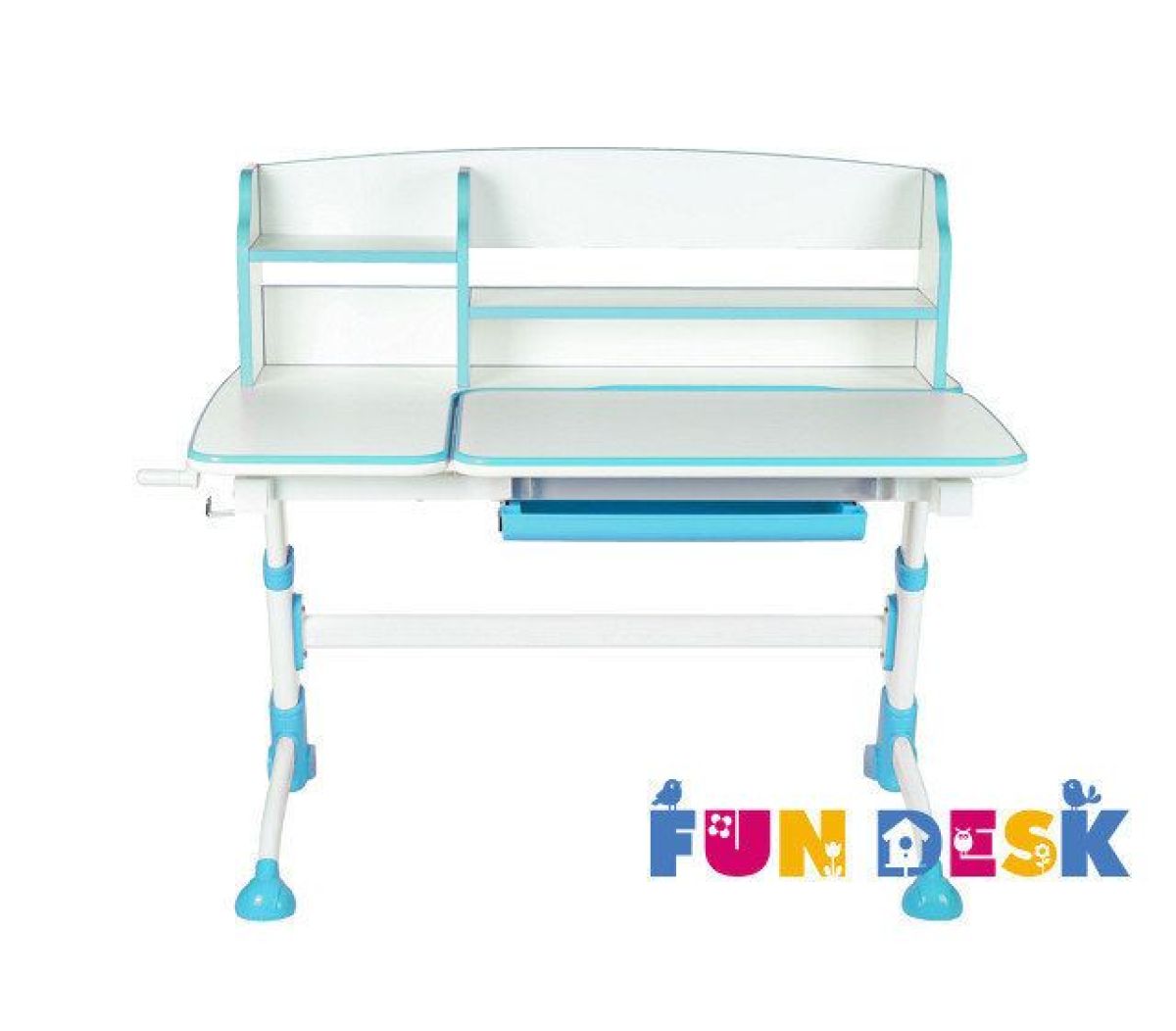 Регулируемая детская парта FunDesk Amare II – эргономичный, регулируемый по высоте, с современным дизайном и навесной полкой стол для вашего ребенка. Наличие полок над столешницей увеличивает рабочее пространство, создавая дополнительное место для хранения книг и канцелярских принадлежностей. Наклоняемая до 25° рабочая поверхность дает возможность выбрать максимально удобный угол наклона для письма, чтения и рисования. Антибликовое покрытие столешницы защищает глаза вашего ребенка от усталости. Благодаря многоступенчатому механизму регулировки высоты парта «растет» вместе с вашим ребенком. Наличие колесиков позволяет легко перемещать парту, не повреждая пол.