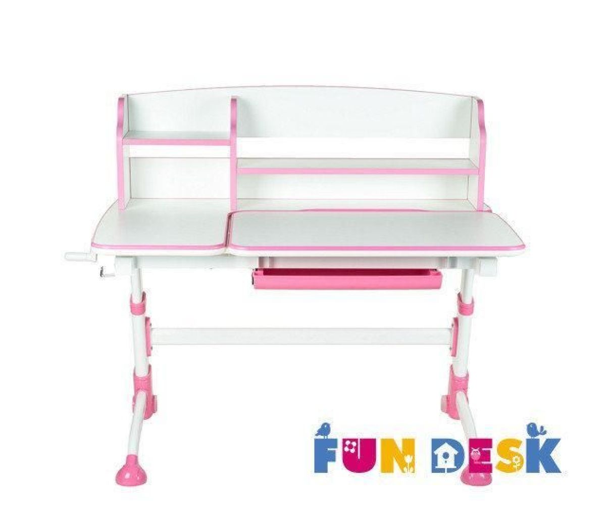 Регулируемая детская парта FunDesk Amare II – эргономичный, регулируемый по высоте, с современным дизайном и навесной полкой стол для вашего ребенка. Наличие полок над столешницей увеличивает рабочее пространство, создавая дополнительное место для хранения книг и канцелярских принадлежностей. Наклоняемая до 25° рабочая поверхность дает возможность выбрать максимально удобный угол наклона для письма, чтения и рисования. Антибликовое покрытие столешницы защищает глаза вашего ребенка от усталости. Благодаря многоступенчатому механизму регулировки высоты парта «растет» вместе с вашим ребенком. Наличие колесиков позволяет легко перемещать парту, не повреждая пол.