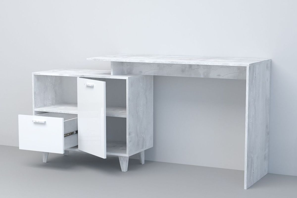 Стол письменный Эго Ст-2 1 дверца 1 ящик (на ножках) Бетон светлый/Белый глянец вы можете купить в интернет-магазине Madimart.ru по цене 10 090 руб. Только качественная мебель от Российских брендов. Если у вас возникли вопросы или вам нужна консультация по наличию, срокам доставки, ценам, обращайтесь любым удобным способом.Вы можете оформить заказ любым удобным вам способом: