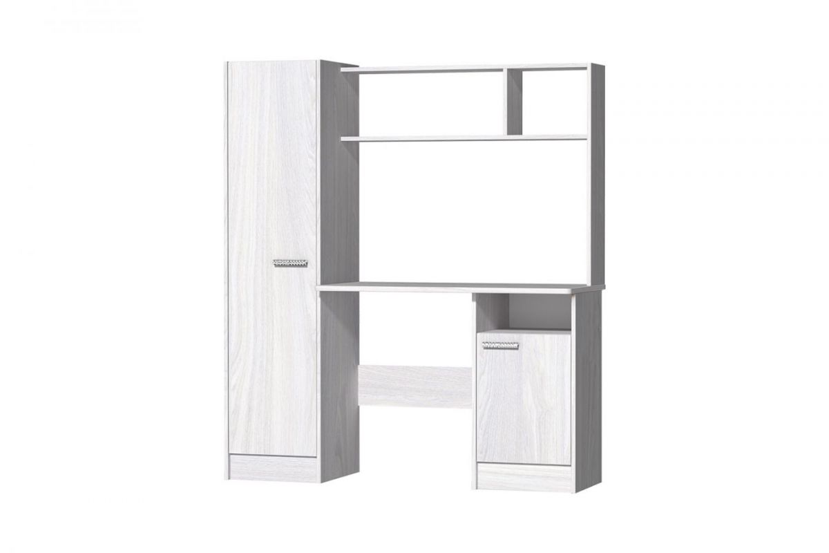 Функциональный письменный уголок поможет организовать рабочее место школьника. Уголок включает в себя письменный стол с надстройкой, тумбу и пенал с полками.