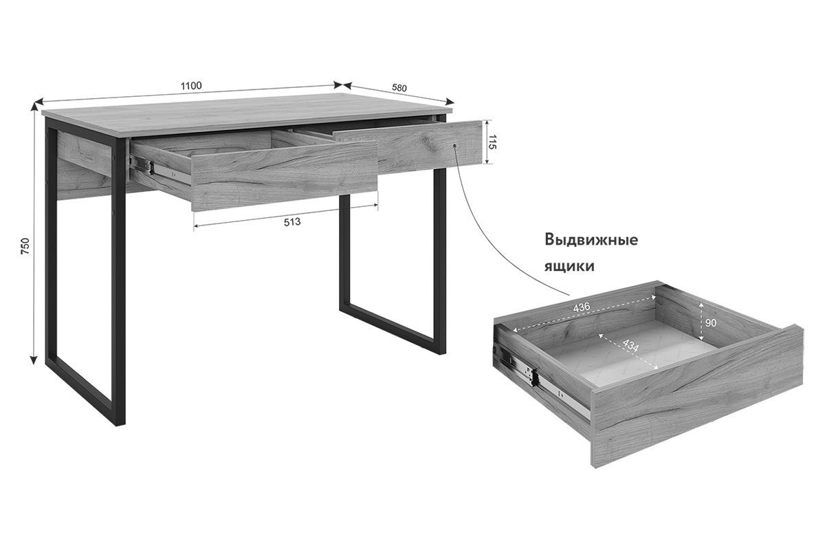Состоит из: Столешницы на опорах с 2-мя выкатными ящиками.