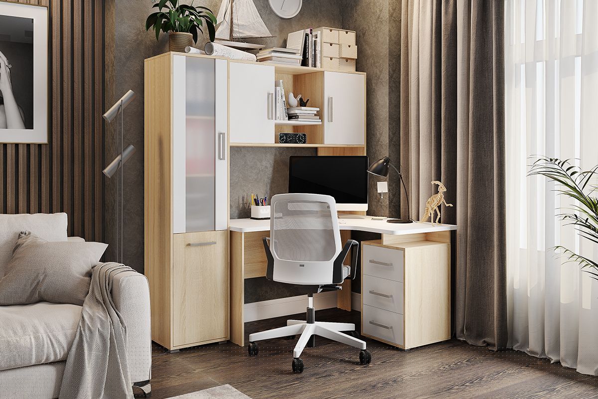 Угловой компьютерный стол «Лайт-2» может быть дополнен функциональной надстройкой или стеллажом той же серии. Главными особенностями данного стола являются радиусные элементы и утолщенная столешница – 22 мм, а также возможность собрать тумбу в одном из двух предусмотренных положений – прямом или диагональном. Сочетание удобства, лаконичности и простоты – идеальное решение для Вашего рабочего места.