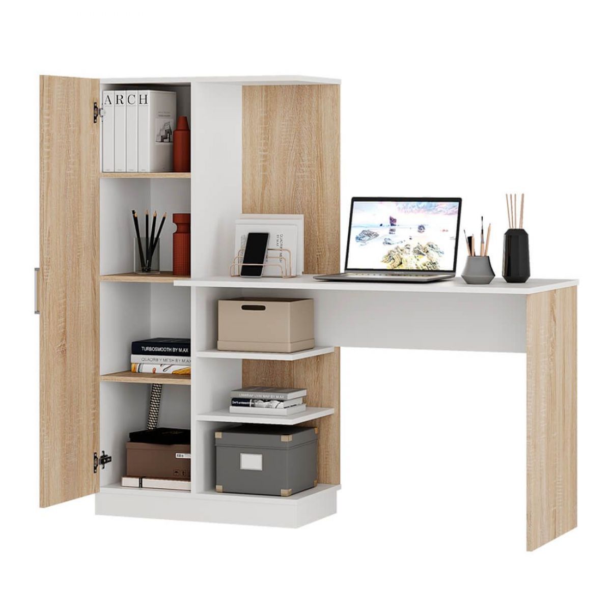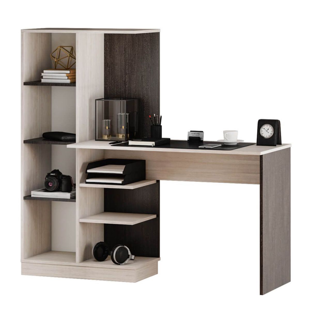 конструкция модели представляет собой вместительную столешницу, зону с открытыми полками,
