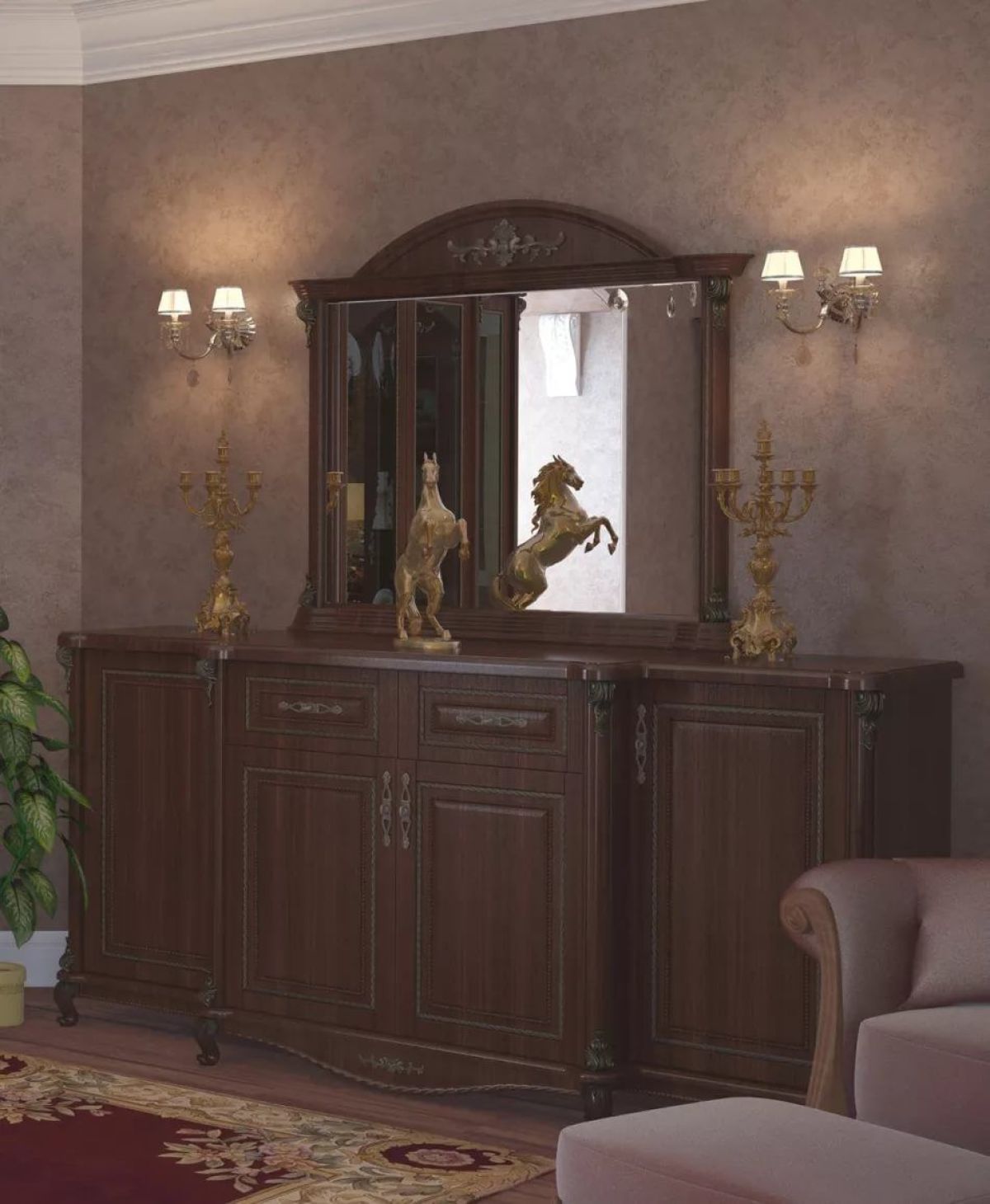 Мечтаете придать своей гостиной торжественность, свойственную царским апартаментам, непременно обратите внимание на гостиную «Да Винчи». Классический интерьер гостиной – это сочетание стиля, изысканности, гармонии и роскоши. Выбирая классический дизайн, вы подчеркиваете безупречный вкус и эстетичность, а также создаете уютную и комфортную атмосферу в гостиной. Роскошная мебель с богатой отделкой и обилие эффектных декоративных элементов - основные отличия классического стиля. Каждый предмет мебели для гостиной или элемент дизайна гармонично вписывается в общую композицию пространства.
