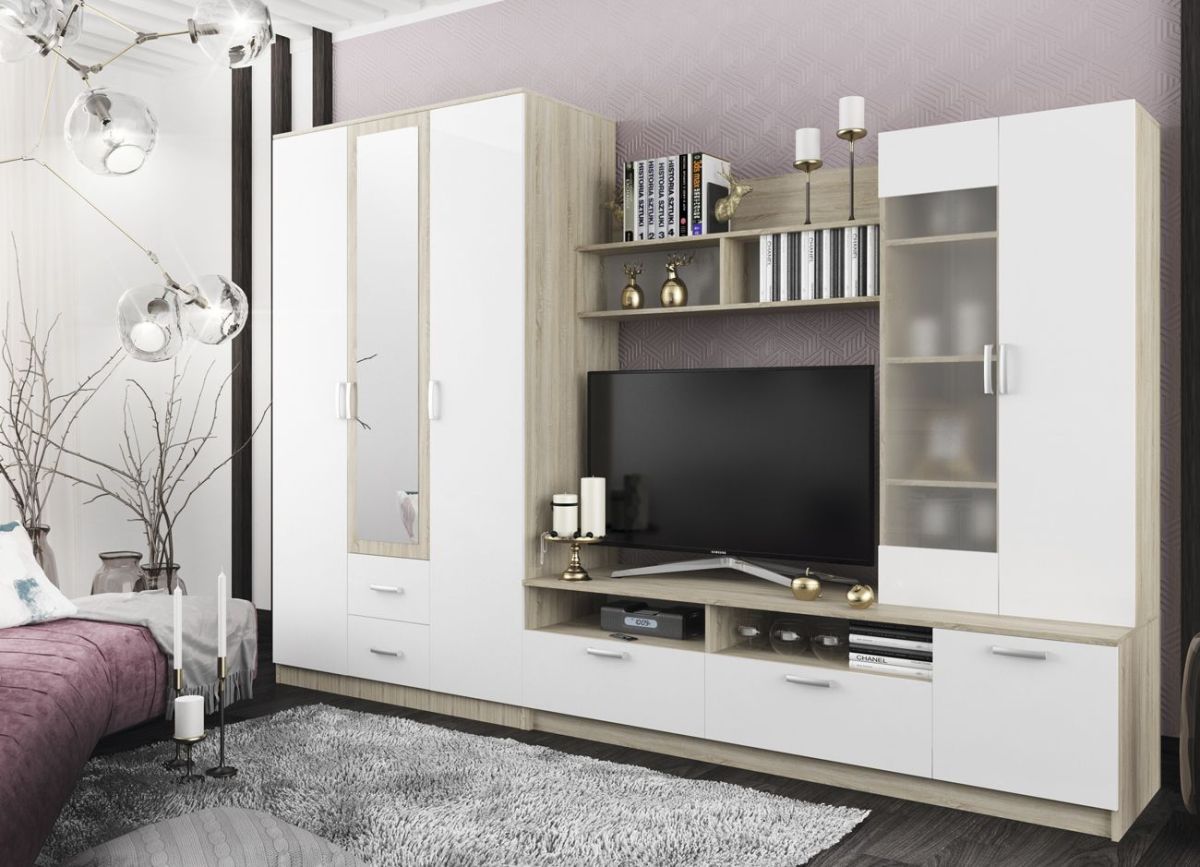 Современный дизайн стенки придает ей особую элегантность. Несомненно, стенка привлечет к себе внимание ваших гостей и станет украшением гостиной.