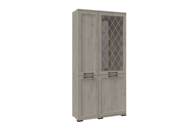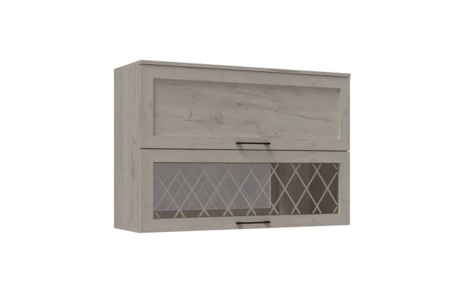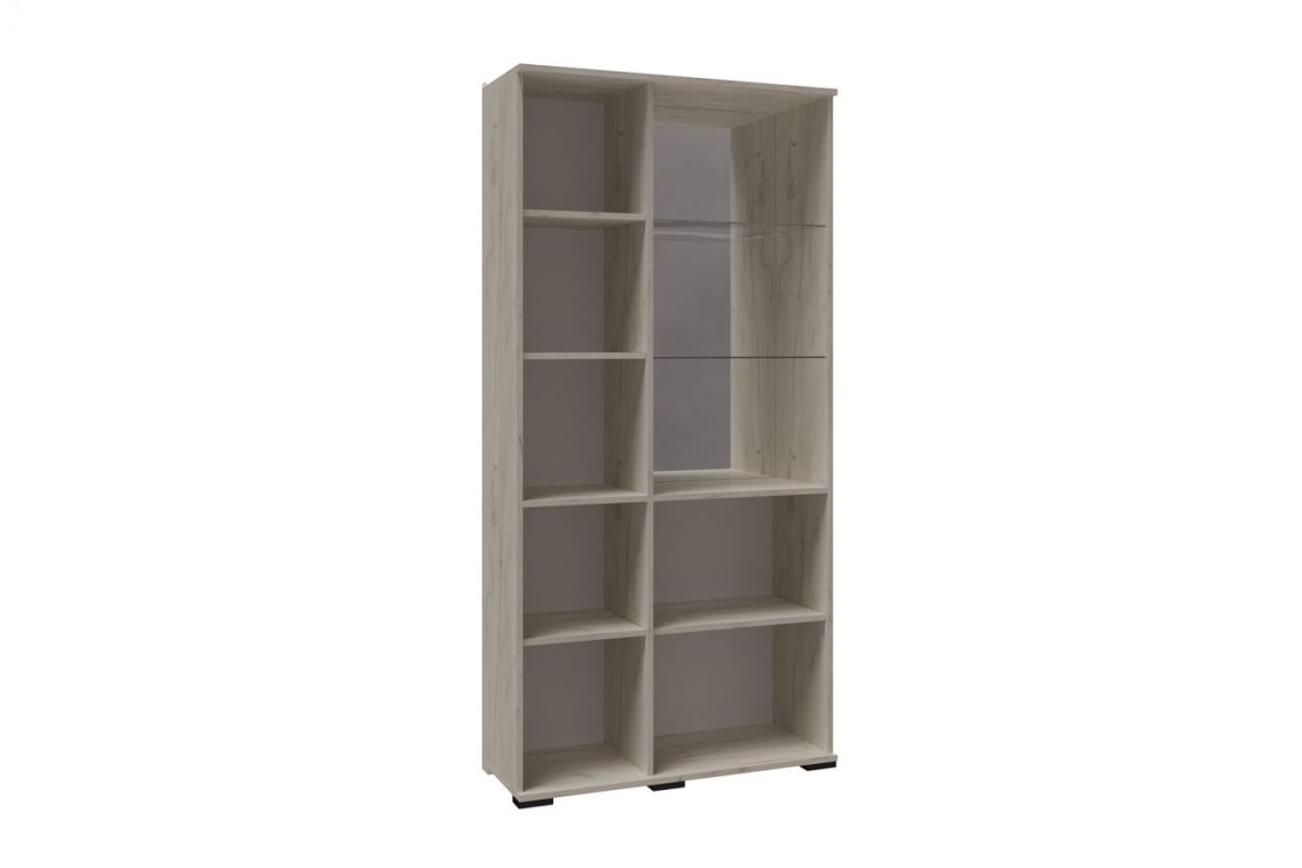 Фасадное стекло в витринах и полке навесной с гравировкой без полировки. В витринах стеклополки, на задних стенках зеркало.