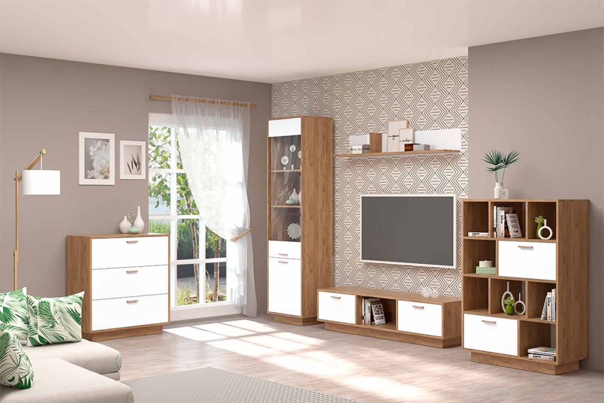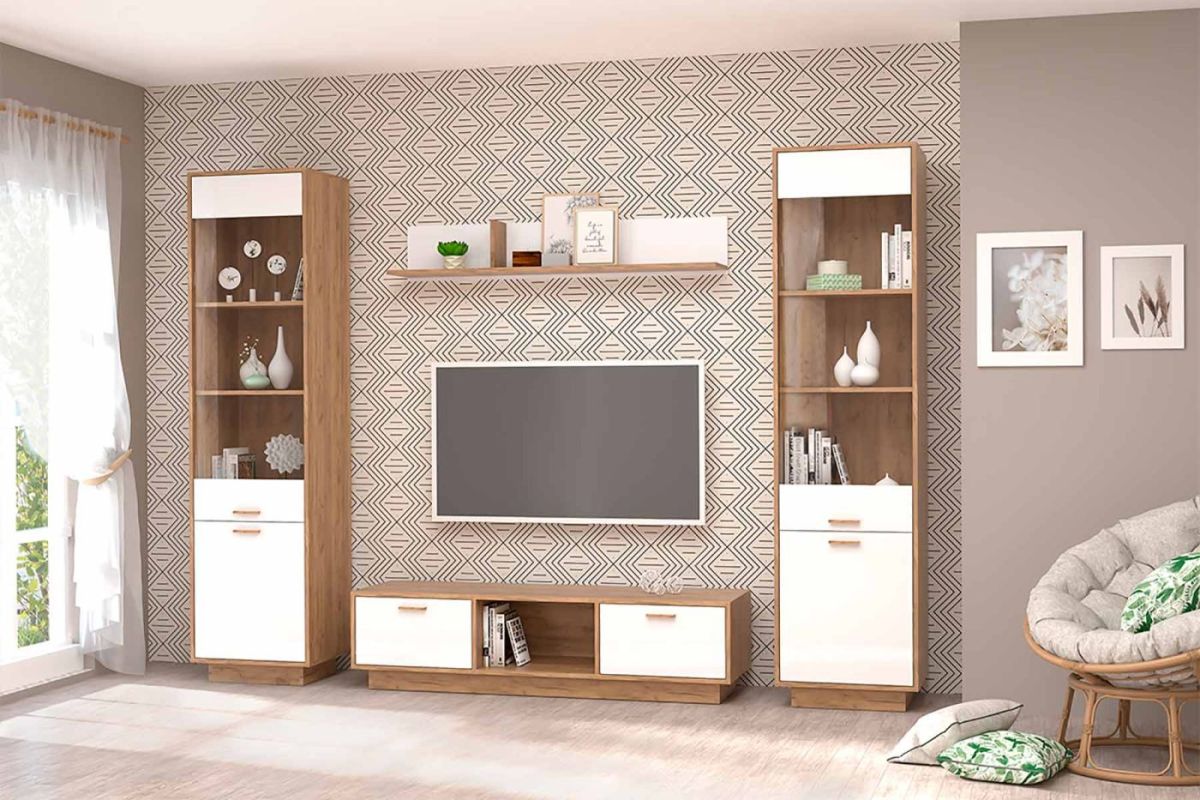 Модульная Гостиная Эго (дуб крафт золотой/белый глянец) цоколь