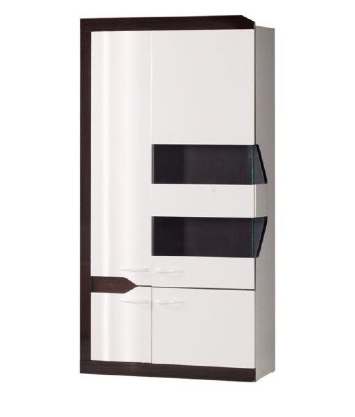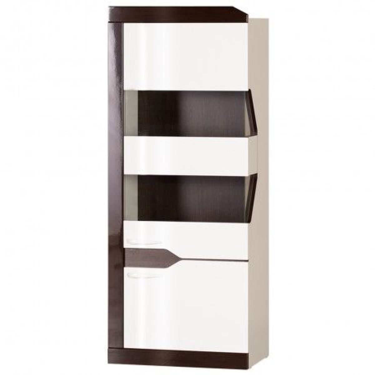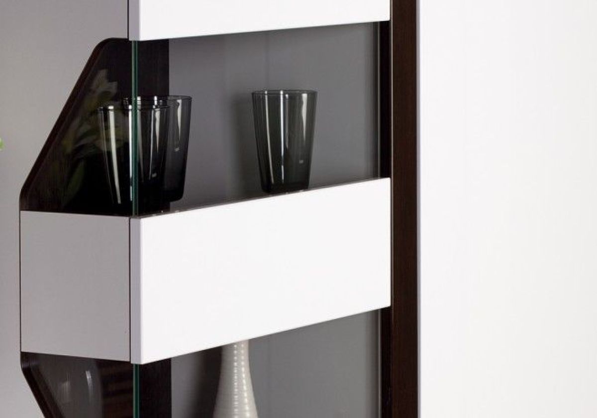 Модульная мебель в современном стиле, выполненная в виде горки. Благодаря сочетанию 2-х контрастных декоров – белого и венге с глянцевыми и матовыми поверхностями, а также оригинальному дизайну двухсторонних стеклянных витрин и декоративному приему стыковки модулей, «Ронда» выглядит эффектно и стильно. Завершают внешний облик белые глянцевые ручки итальянского производства.