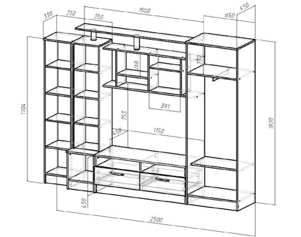 Габаритные размеры Ш*В*Г: 2500*1920*450 мм.