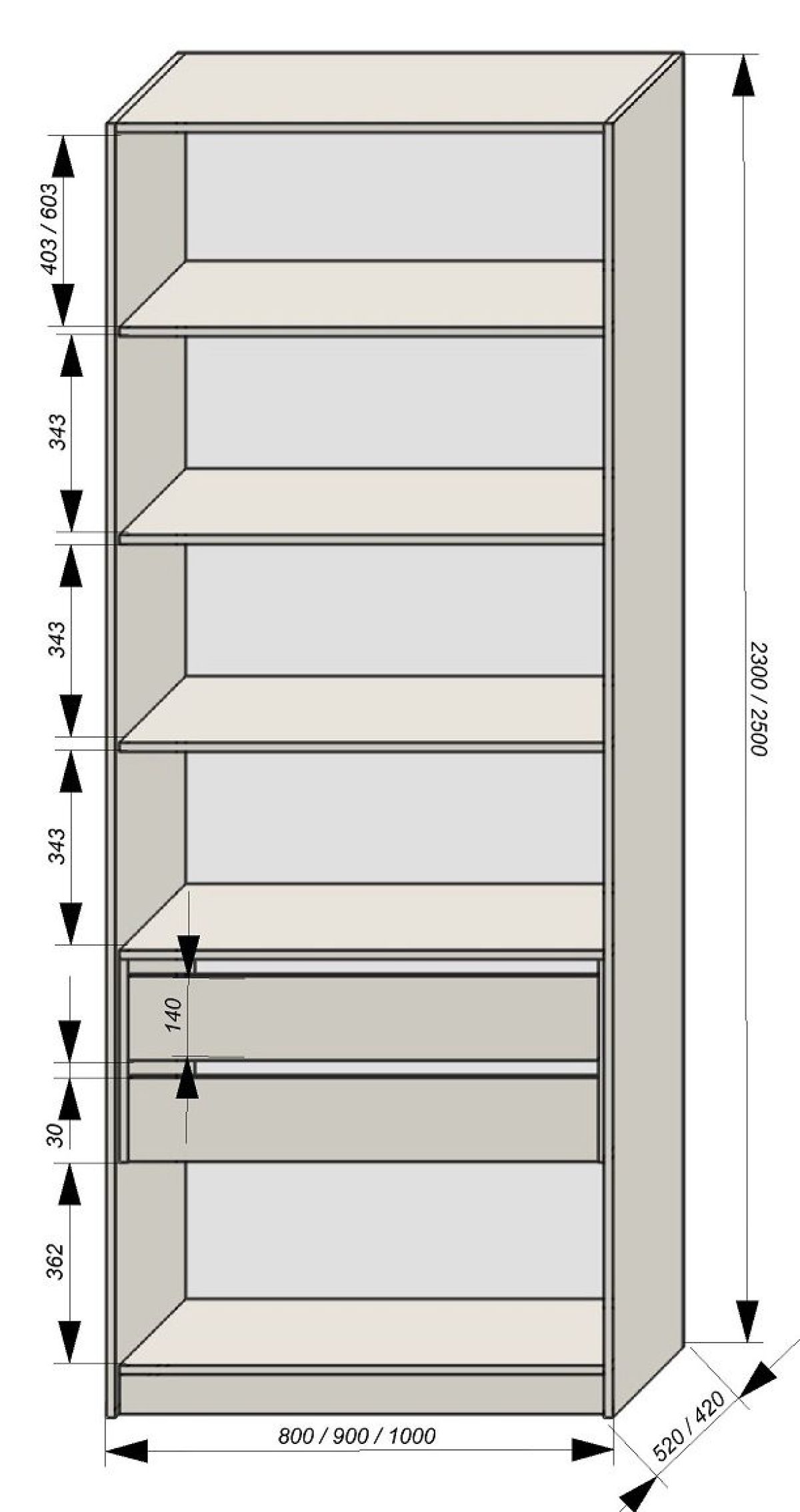 *Возможна комплектация модуля с выдвижными ящиками направляющими скрытого монтажа soft-closing (плавное закрывание) несущей способностью до 20 кг.