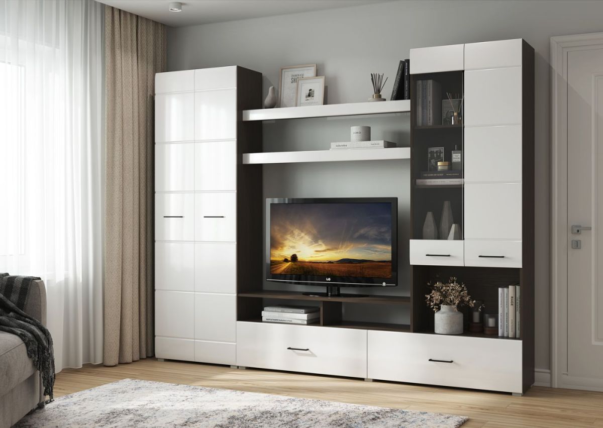 Гостиная Альфа МДФ (Венге/Белый глянец)