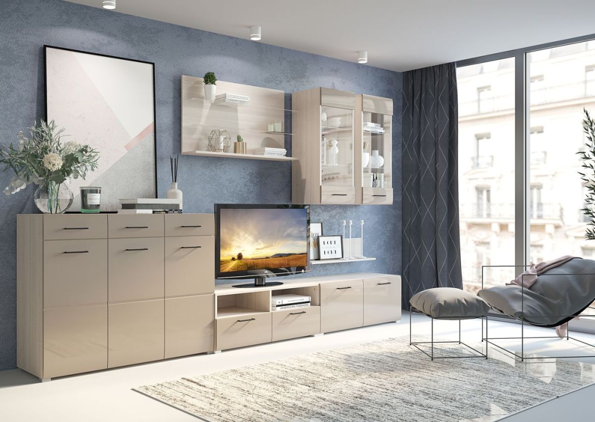 Стенка НЕНСИ 3 (Ясень Шимо светлый/Капучино глянец)