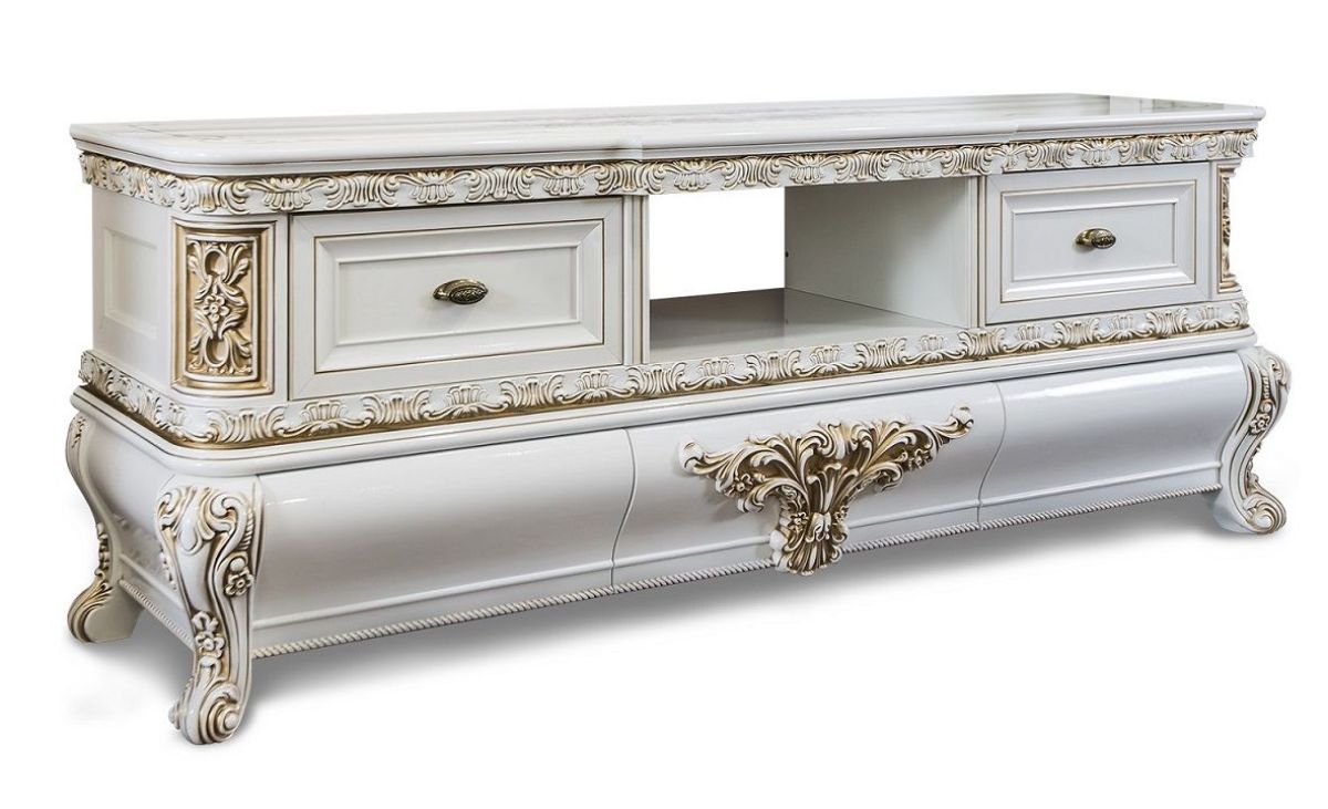 Гостиная Алсу 2+2 белый глянец - состоит из тв тумбы и двух двухстворчатой витрин, поистине королевская мебель созданная на фабрике ЭРА-Мебель. Алсу отличается максимально светлым тоном выкраски и глубокой золотой патиной.