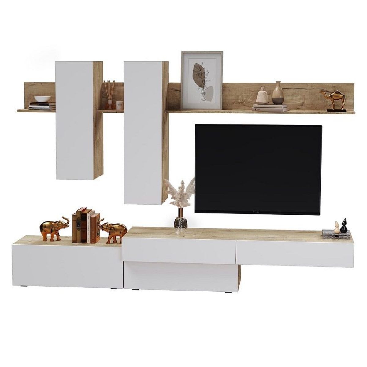 Стильная гостиная «Фрида» по праву займет центральное место Вашей зоны отдыха, вмещая в себя все самое необходимое для хранения декора, вещей, просмотра ТВ и другого досуга.