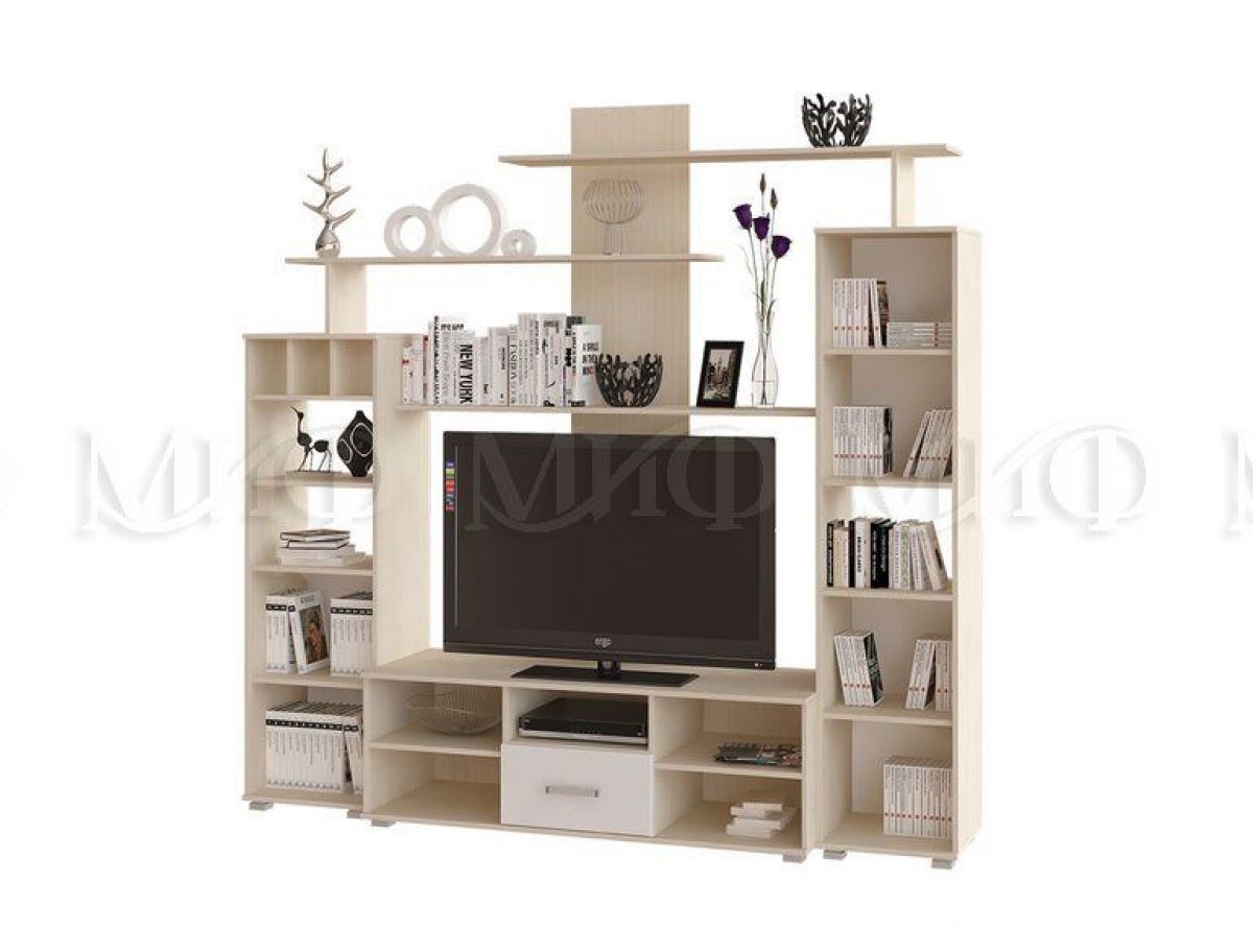 Светлая современная глянцевая гостиная с приятным дизайном. Мебельная горка для гостиной будет отлично смотреться на фоне более насыщенного по цвету интерьера, смягчая и осветляя его.