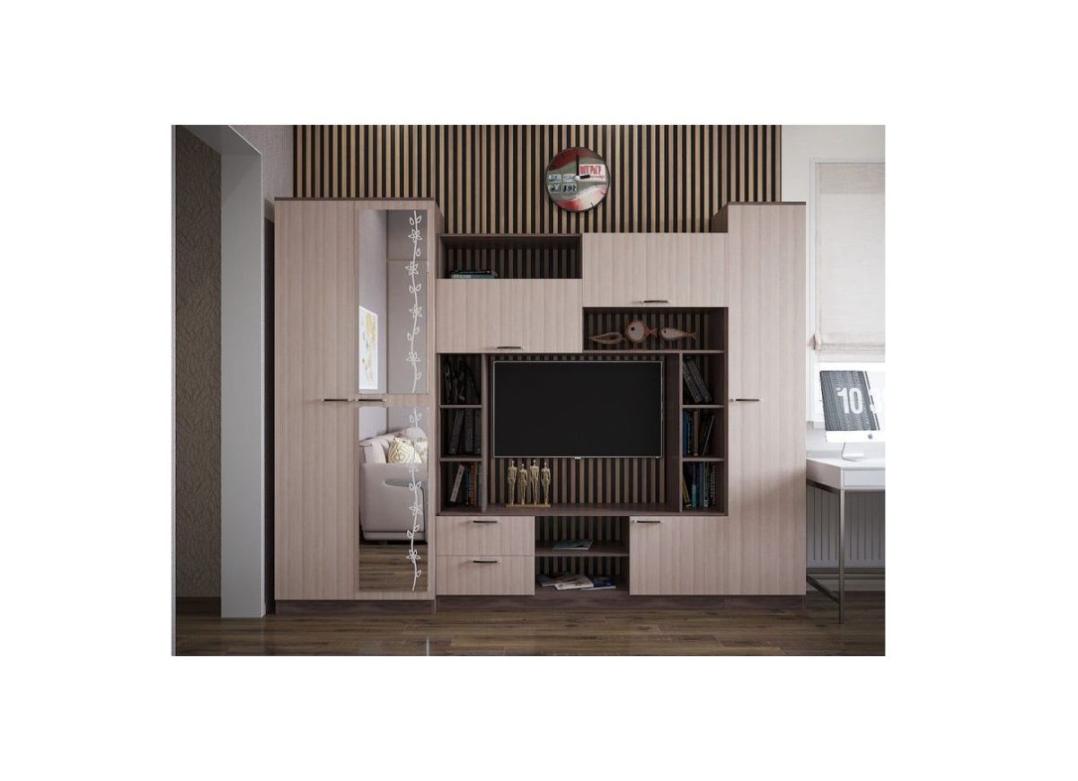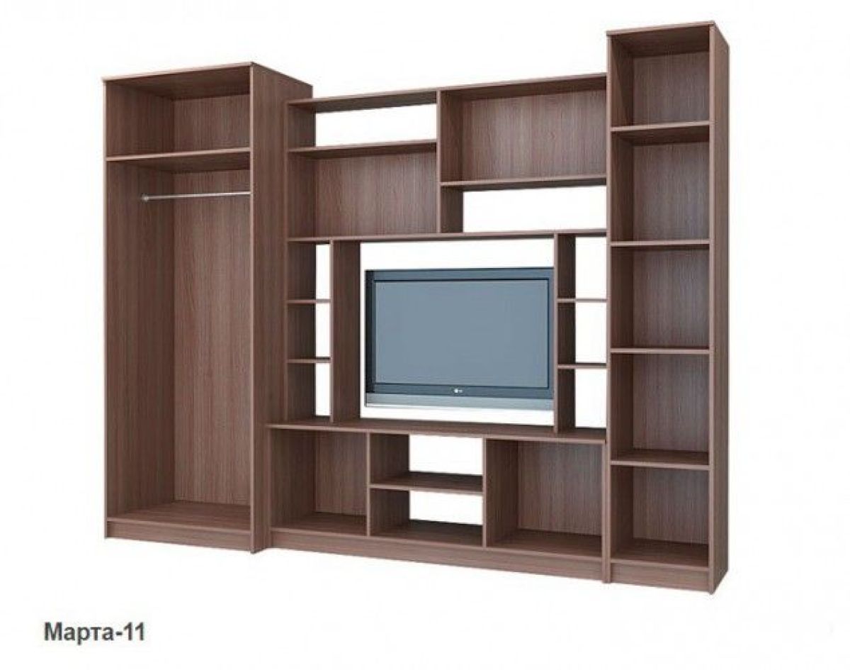 Гостиная Марта – это отличное решение для меблировки гостиной. Тёплые оттенки сделают атмосферу гостиной уютной. Кроме того, гостиная Марта содержит все необходимые модули. Шкаф, полки, ящики и нишу для одного из главных элементов — телевизора. Зеркало в полный рост визуально расширит пространство. Множество расцветок на выбор.