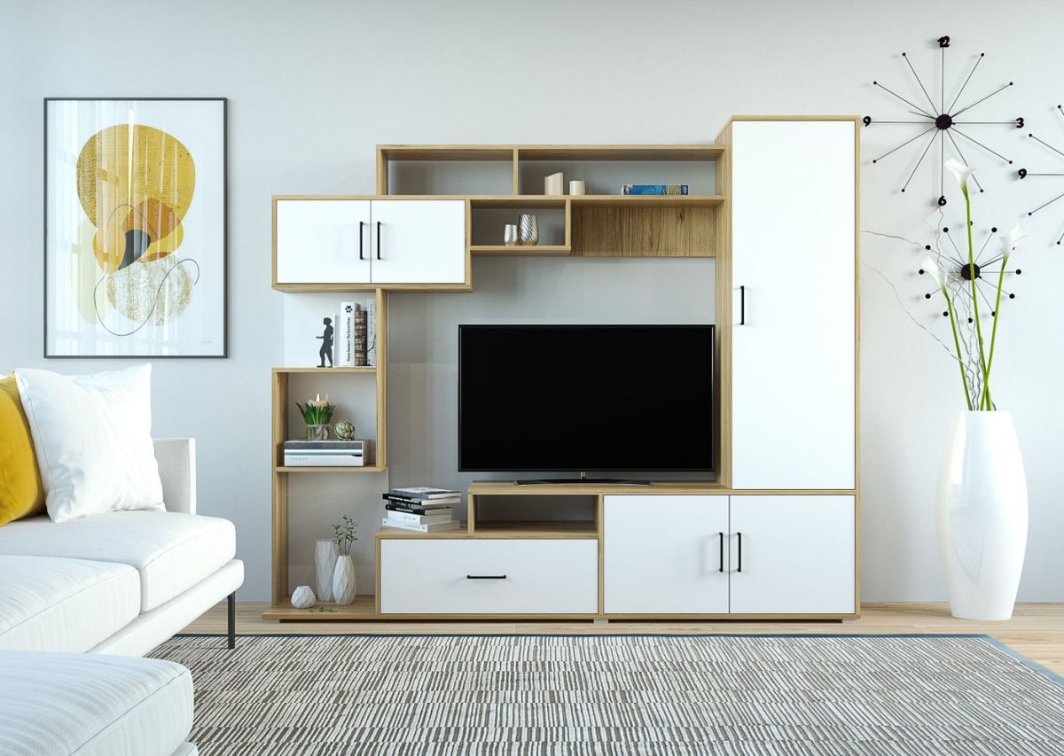 Современный дизайн стенки придает ей особую элегантность. Несомненно, стенка привлечет к себе внимание ваших гостей и станет украшением гостиной.