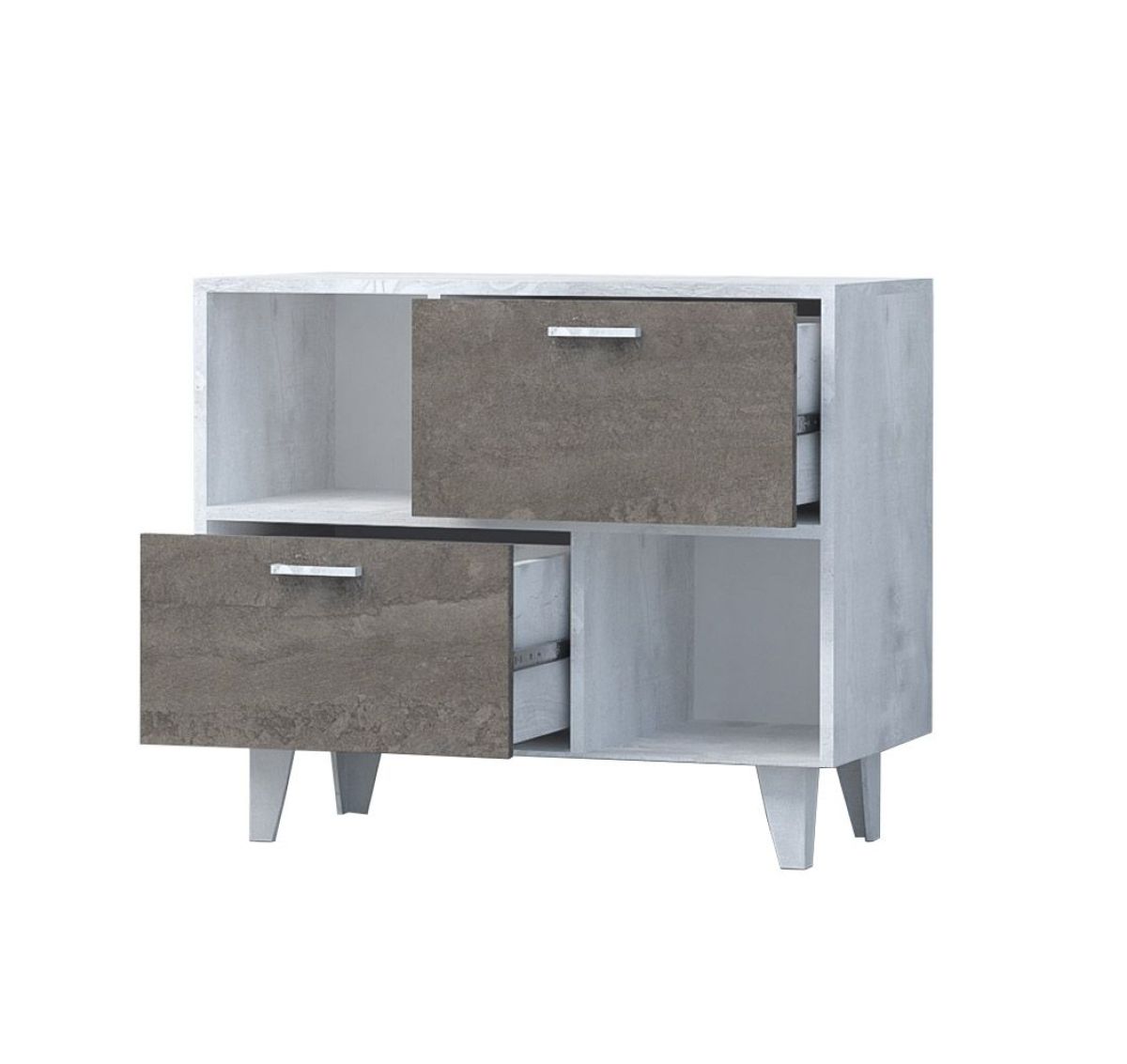 Эго Т-1 Тумба с 2мя ящ (бетон светлый/камень темный) на ножках